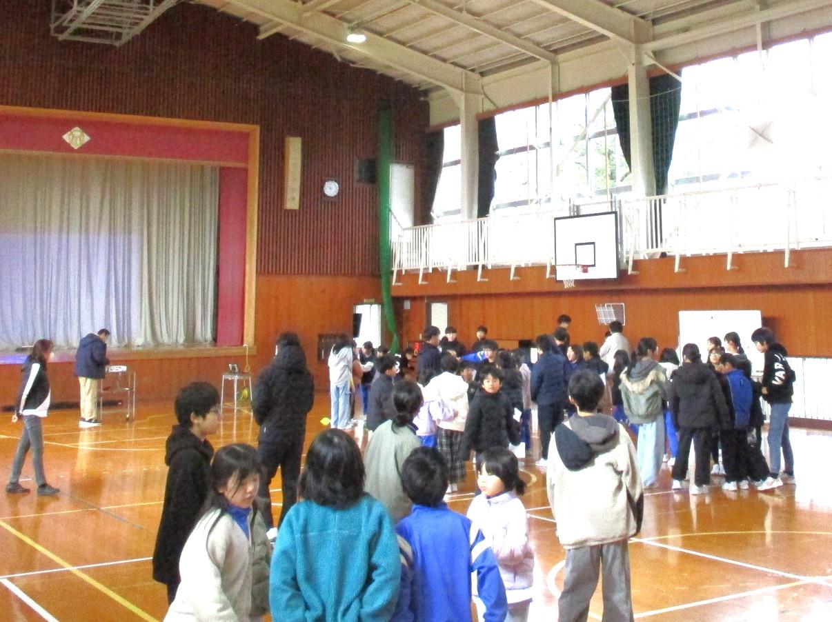 委員会の発表の後、6年生から、「感謝の気持ちを込めて、『カーテンどめ』を作って各教室にプレゼントします。」と紹介がありました。ありがたく使わせてもらおうと思います。児童総会が終わると、チャレンジ委員会の計画で、校舎内に隠れているチャレンジ委員会のメンバーを縦割り班ごとに見つける「全校かくれんぼ」を行いました。