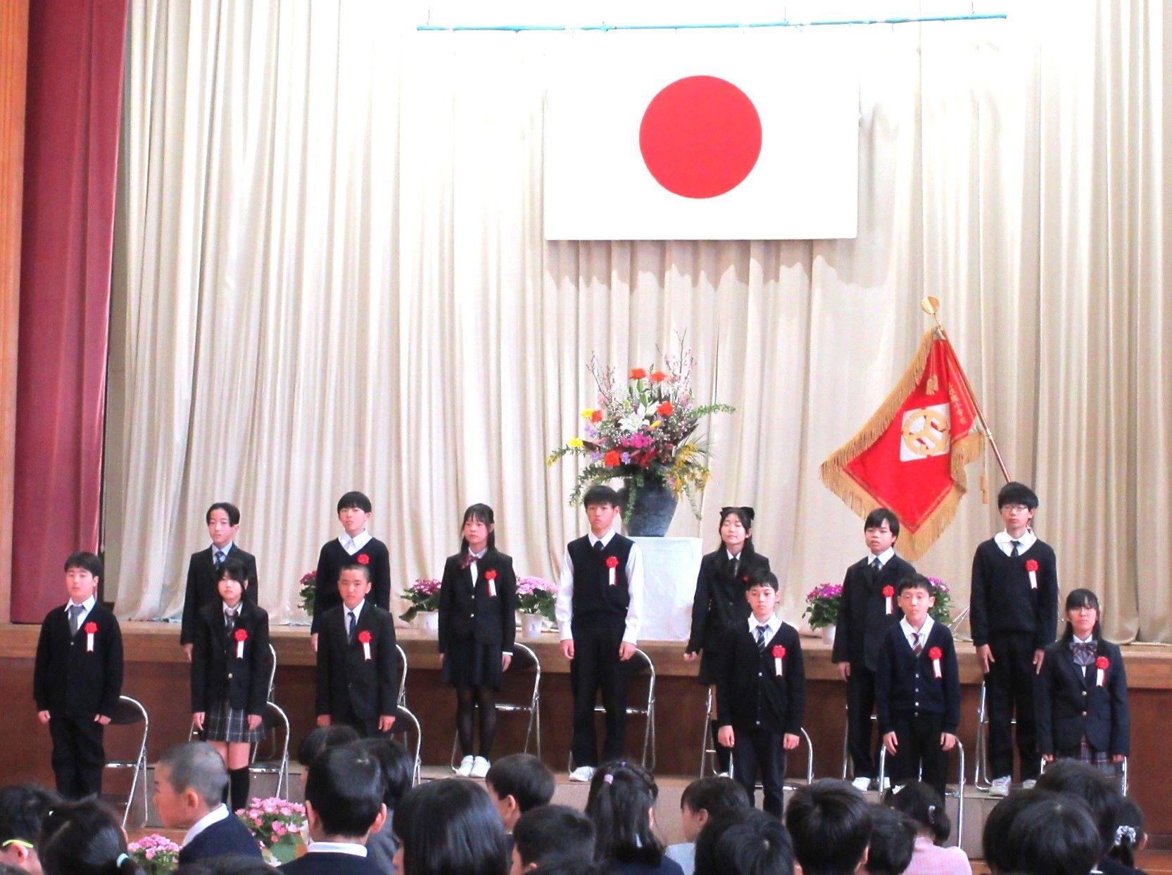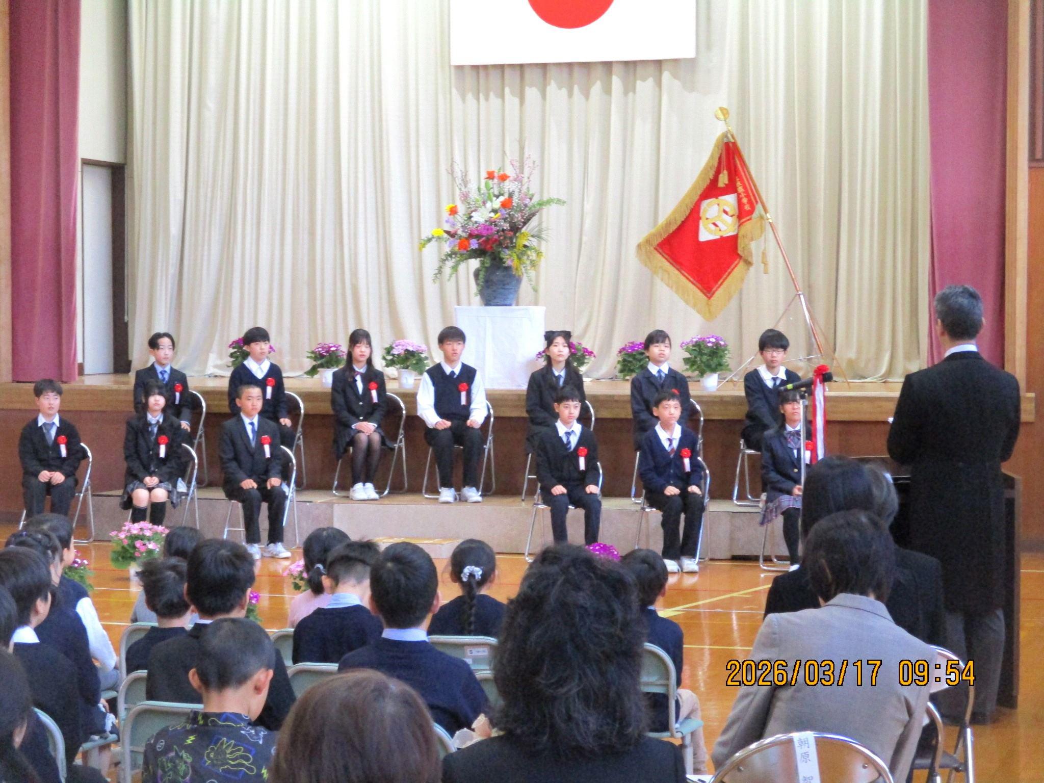 卒業生13名が全員そろって、秋鹿小学校を巣立っていきました。在校生のみんなも、精一杯の態度や歌声で感謝の気持ち、おめでとうの気持ちを伝えました。みんなの温かい気持ちで満たされた式場で、とてもよい卒業式となりました。卒業生の皆さんの輝かしい未来をみんなで祈っています。