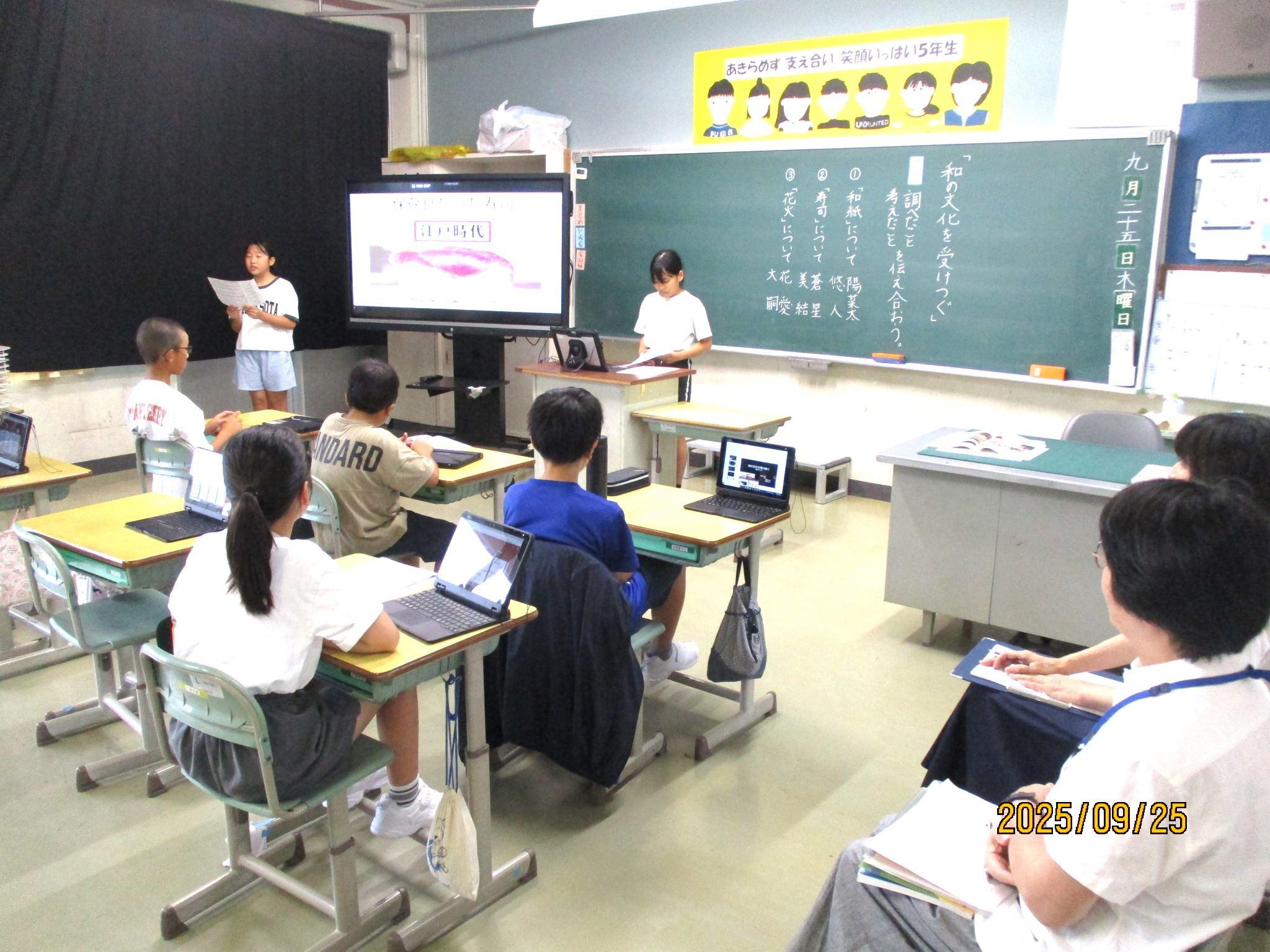 4年生は、国語「文の組み立てと修飾語」の学習の様子、5年生は、国語「和の文化を受けつぐ」の発表の様子を見ていただきました。
