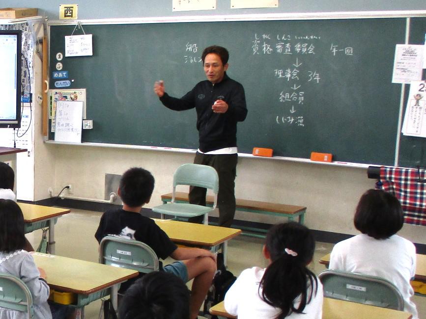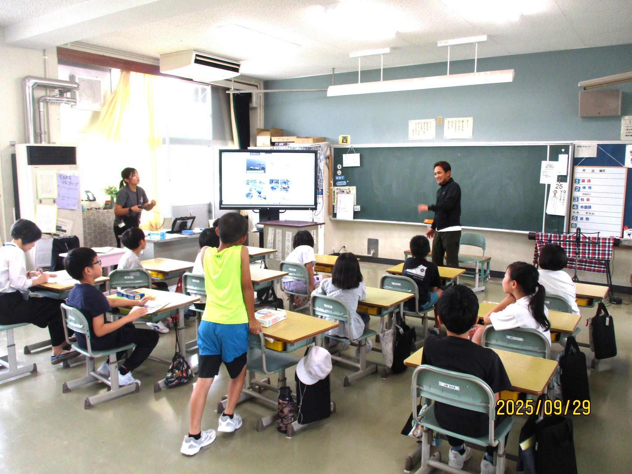 こどもたちの聞いてみたいことがたくさんあったため、質問に答えていただく形で進んでいきました。きっかけの他にもこの仕事での苦労やうれしかったこと、地元<秋鹿>への思いなど、たくさん語ってくださいました。「シジミ漁師になりたい!」と思っているこどもだけでなく、誰もが働くということについて考えたり、自分の将来について考えてみたりする貴重な機会になりました。