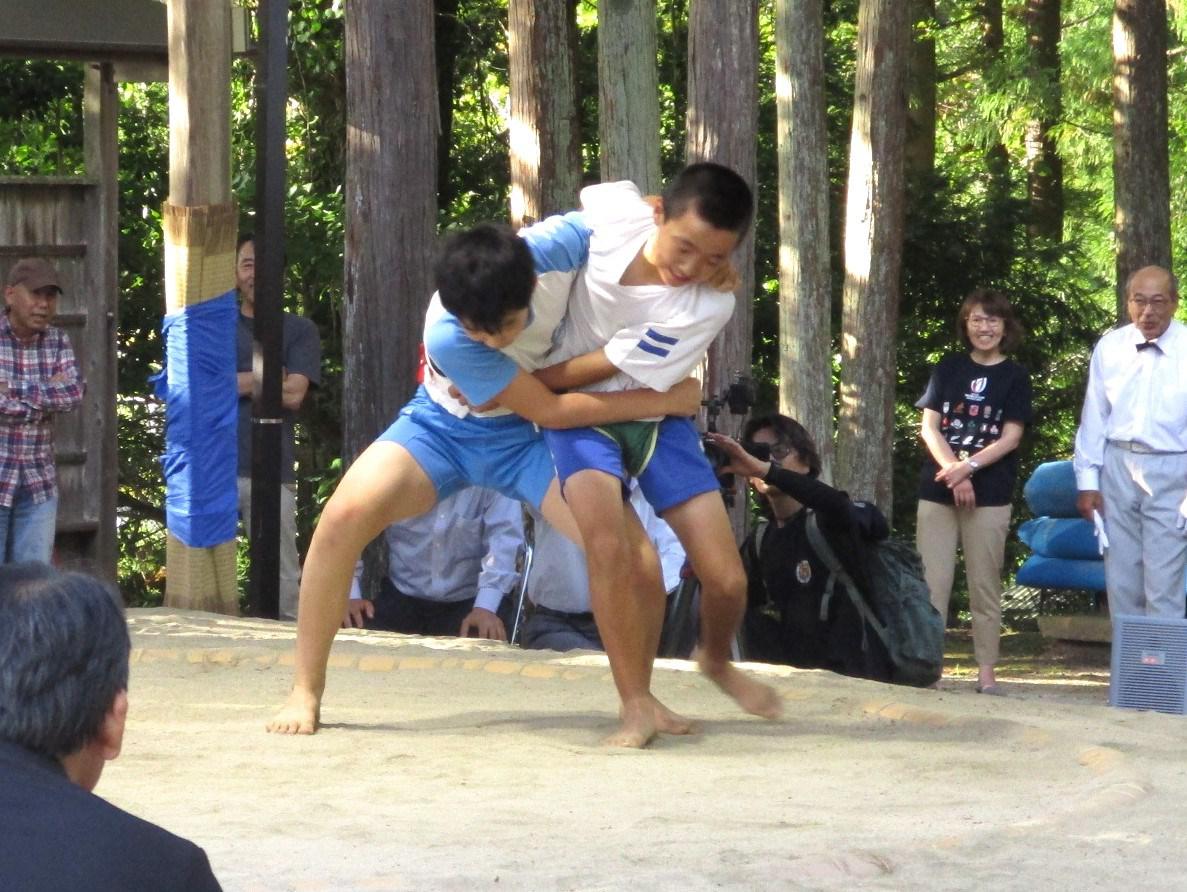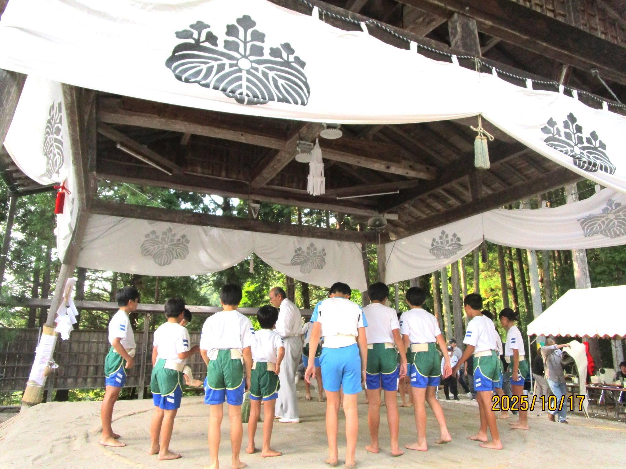 10月17日(金)、校区の大垣町にある内神社(高野宮)で行われた「高野宮相撲大会」に、秋鹿小の児童も参加しました。(参加は4,5,6年生の希望者)