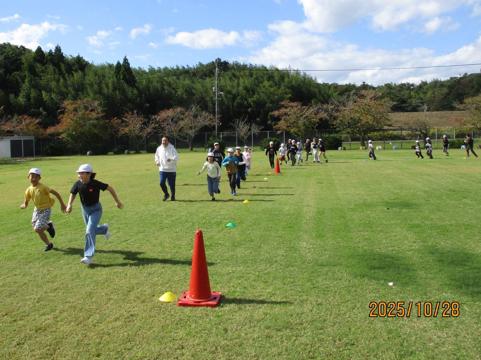 10月28日(火)、大休けいに全校のみんなで校庭を走りました。これは、11月に開かれる「秋鹿っ子マラソン」に向けての体力作りで、毎週火曜日と金曜日の大休けいに行っています。