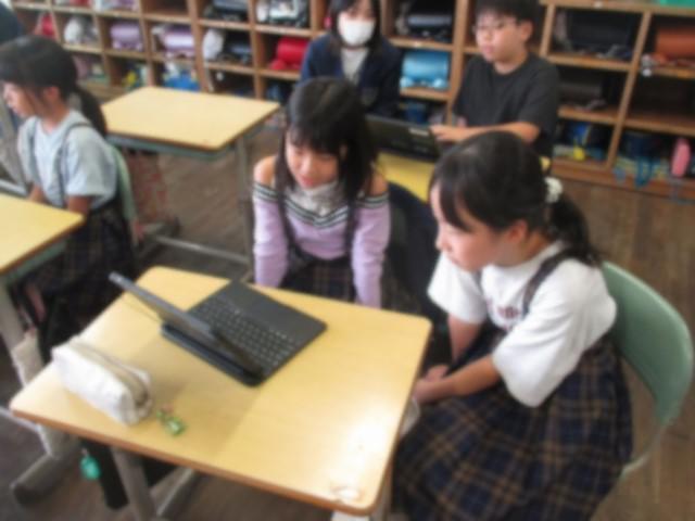 6年生が、平和学習の集大成として、学んだことをまとめ、5年生に伝える活動を行いました。
