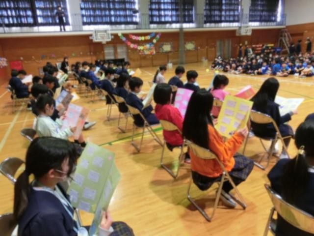 途中でクイズのコーナーもあり、5年生が楽しい演出を工夫していました。クイズの答え合わせも大いに盛り上がりました。