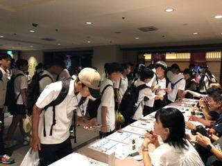 出発の朝は天候にも恵まれ(朝から既に蒸し暑いですが)、校庭で出発式を行ってからバスに乗り込みました。