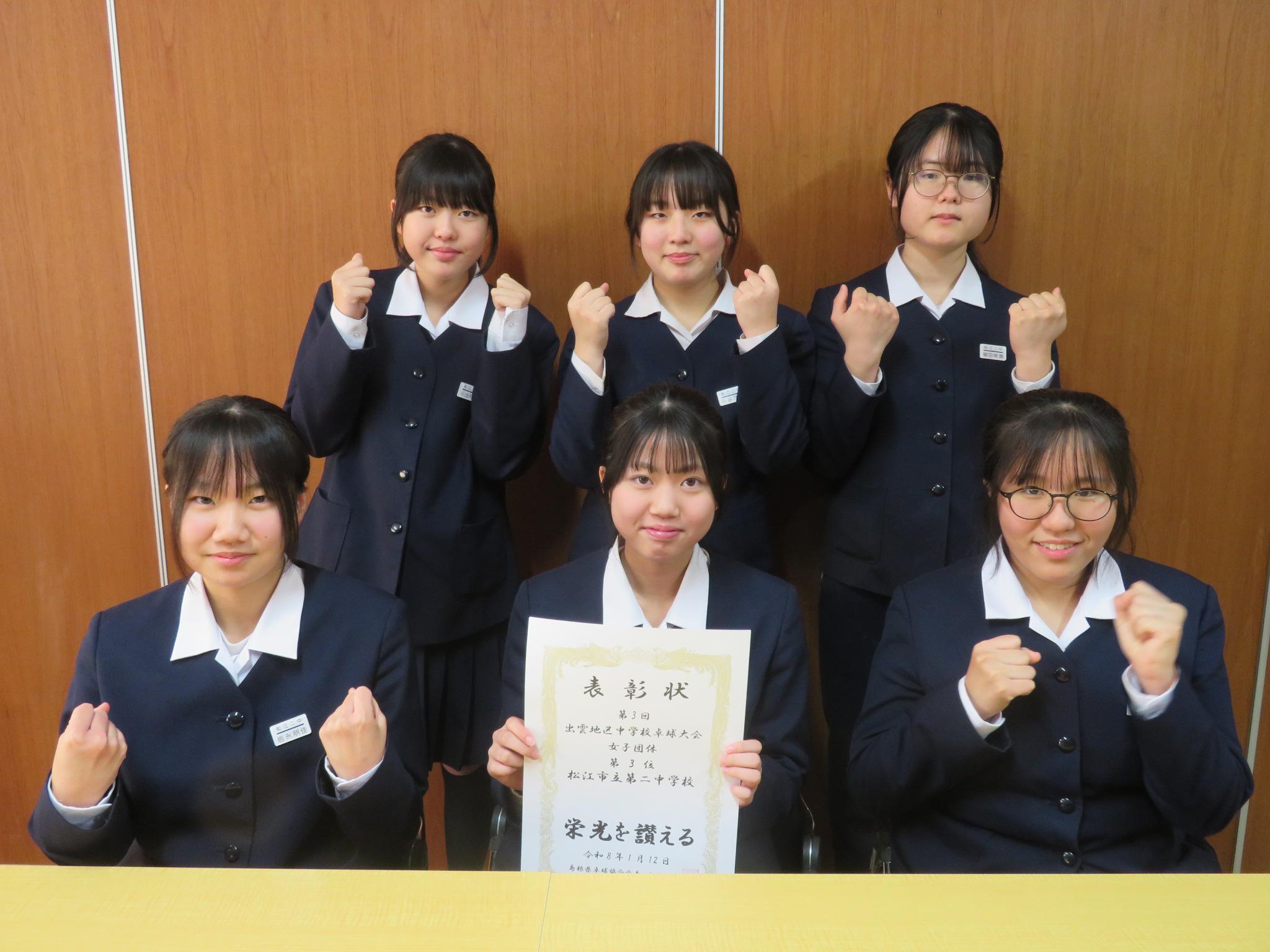 男子卓球部に続いて女子卓球部も報告に来てくれました。おめでとうございました!