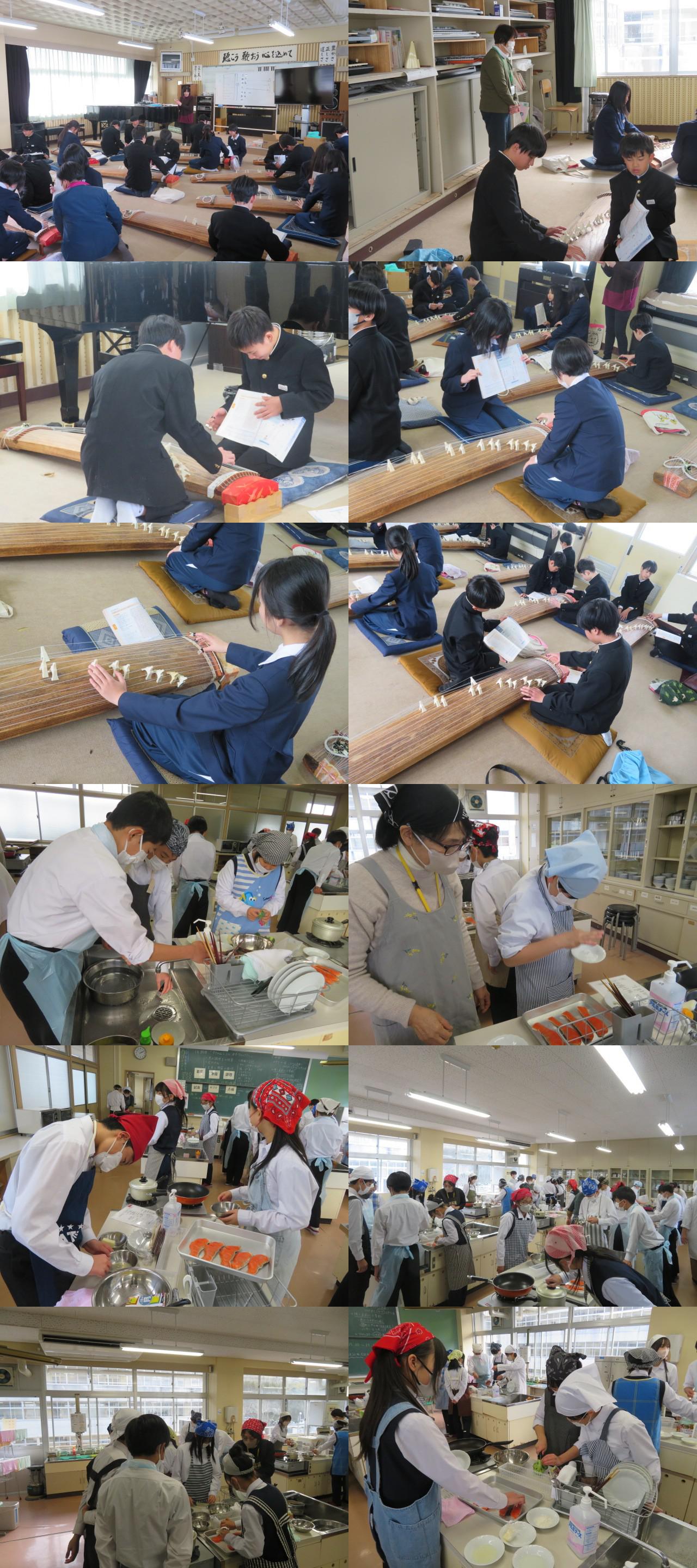 1月も最終週になりました。学習もラストスパートという感じで進んでいます。特に活動を伴う学習ではサポートの先生だけでなく、学校支援地域ボランティアの皆さんのお力添えもいただき、学習環境を整えたり学習支援をいただいたりと、限られた時間を有効に使って学習に取り組むことができるようにしています。音楽の授業では筝の音色に親しみながら日本の音楽を味わう学習、家庭科の授業では、魚の調理実習に取り組んでいました。地域支援の皆様には、毎日のように学校に来ていただき本当にありがとうございます。