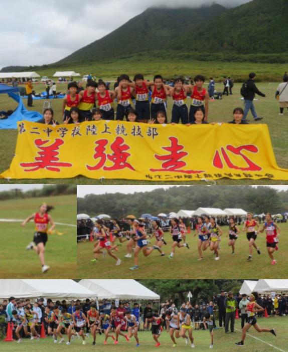警察署訪問と同じ時間。三瓶クロスカントリーコースで県駅伝が開催されました。松江と同じで、小雨と強風でいいコンディションとは言えませんでしたが、男女ともに全区間を力走、快走しました。試走よりも大幅にタイムが向上。順位は男子が26チーム中23位、女子が19チーム中15位ですが、成績以上に満足感と充実感がみなぎっていました。すばらしい!! 昨年度の顧問ファミリーも応援に来てくれたようです。うれしいですね。