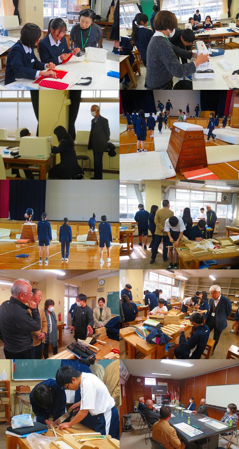 ãç¶ããŠã¯ãåŠæ ¡éå¶åè°äŒãã§ããïŒæéç®ã®ææ¥ãå§å¡ã®çããã«å芳ããŠããã ããç¶ããŠåè°ãè¡ããŸãããå®¶åºç§ã§ã¯åŠç¿æ¯æŽãã©ã³ãã£ã¢ã«æå°ãããŠããã ããªããåã ã«äœæ¥ãé²ããŠããŸããäœè²ã§ã¯ãè·³ã³ç®±ã®é«ããçåŸãéžæããŠææŠããŠããããæšå·¥ã§èšèšå³ã®äœæã«3D CADã䜿çšãèªåã®ãã¶ã€ã³ã«ããäœåãã€ãã£ããããŠããæ§åãã芧ã«ãªãããæã¯åãããšããããã€ãã£ããããã®ãåœããåã ã£ããã©ãèªåã§æ±ºãããã ããèªåã«åã£ããšãããéžã¶ããæºè¶³æãããã ããããããäžç·ã«ä»²è¯ã掻åããŠãããããšãããææ³ãããã ããŸããããŸããäºäžçããã©ã³ãã£ã¢ã§å°åè¡äºã«åå ãããè·å ŽäœéšåŠç¿çã§å°åã§åŠç¿ããããããå§¿ããããåŸããåããŠããŠãæšæ¶ããŠãããŸãããããæŽ»åã§ã¯ã次ã©ãããŸããããããšç©æ¥µçãªå§¿ãèŠãããŸãããããšãããææ³ãããã ããŸããã