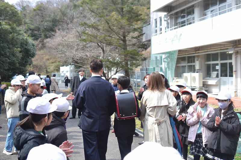午前中だけ、晴れ間がのぞいて外で6年生を見送ることができました