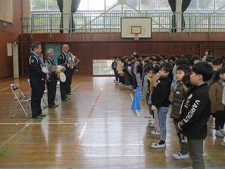 今朝。この1年間、登校中に毎朝お世話になった交通指導員さんに感謝する会が行われました。