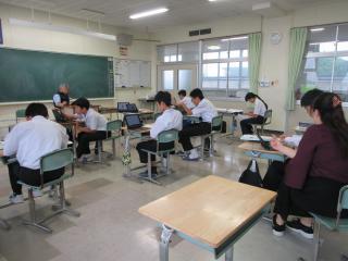 <3年生>2校時の音楽の授業では、11月2日(土)開催予定の合唱コンクールに向け、男声と女声にわかれて練習をしていました。