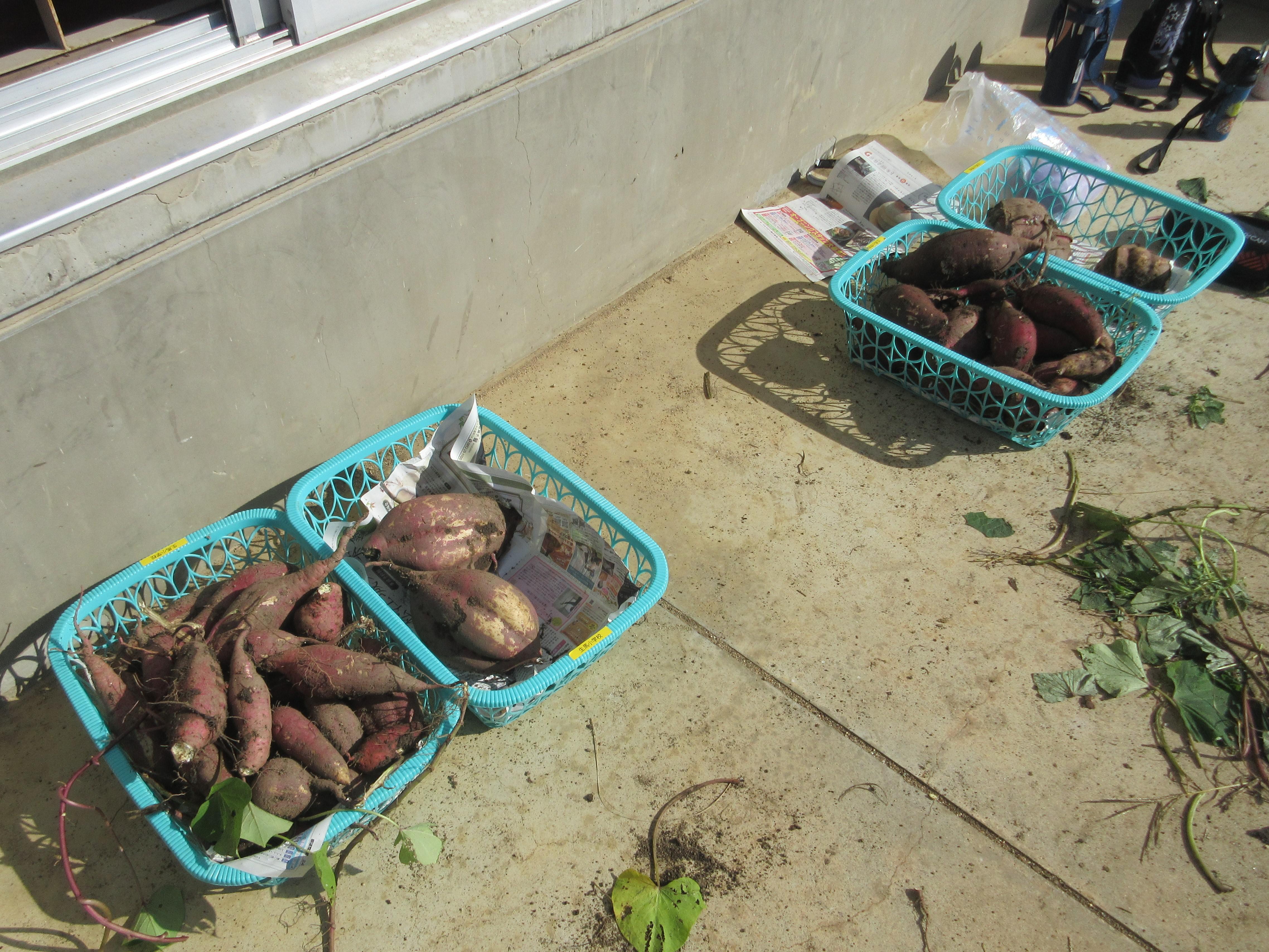長いつるを引っ張り土を掘り起こすと、大きなお芋が土の中からたくさん出てきました。土に触れたり、お芋が土の中からどうやって出てくるのか体験したりして、こどもたちは大喜びで収穫の達成感を味わっていました。実りの秋です!1年生は収穫したお芋を大事に持って帰っていました。