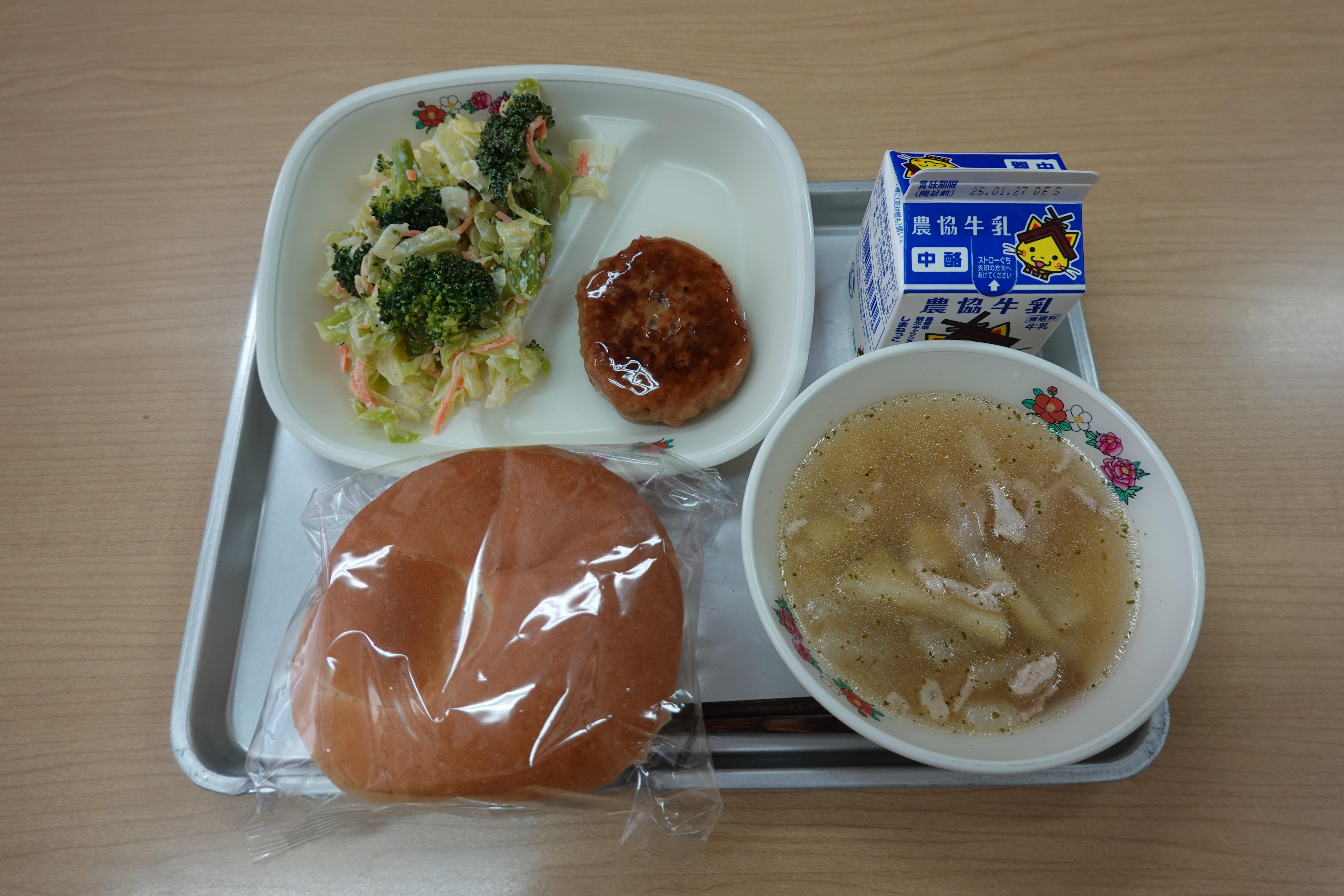 今日の給食:照り焼きハンバーガー、牛乳、ブロッコリーのマヨサラダ、野菜と豆のスープ でした。今日の給食の時間、5年生は親子給食試食会でした。親子で楽しく会話をしながら、おいしく給食をいただきました。5年生の保護者の皆様、ご参加ありがとうございました。