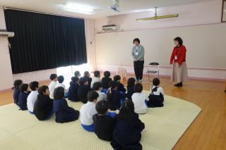 今日は今年度最後のお話会でした。3時間目に1年生が、4時間目に2年生が、語り手ボランティアグループの「おはなしもみの木」の皆さんの語りを聴きました。ろうそくに火がともると、声と言葉にしっかり耳を傾け、想像力を働かせながら上手に聴いていました。おはなしもみの木の皆様には、今年度どの学年も学期に1回ずつ、合計3回お話をしていただきました。こどもたちは毎回この時間を楽しみにしていました。たいへんありがとうございました。来年度も引き続き、よろしくお願いいたします。