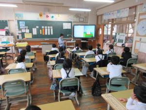今日から、ふれあい隊(読み聞かせボランティア)の皆様による朝のブックタイムが始まりました。今日は、3名のふれあい隊の皆様に来ていただき、1~3年生がお世話になりました。書画カメラで絵本を大きく映し、子どもたちの目は電子黒板に映し出される絵本にくぎ付けでした。読み聞かせ経験の積み重ねによって、読書が好きな子どもが育っていくと思います。ふれあい隊の皆様に感謝です。