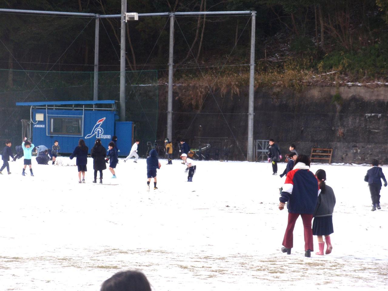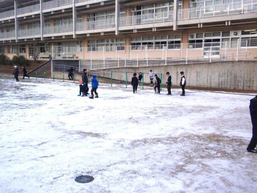 休み時間の雪遊び