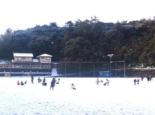 2月10日、連日の大雪で校庭は朝から真っ白でした。