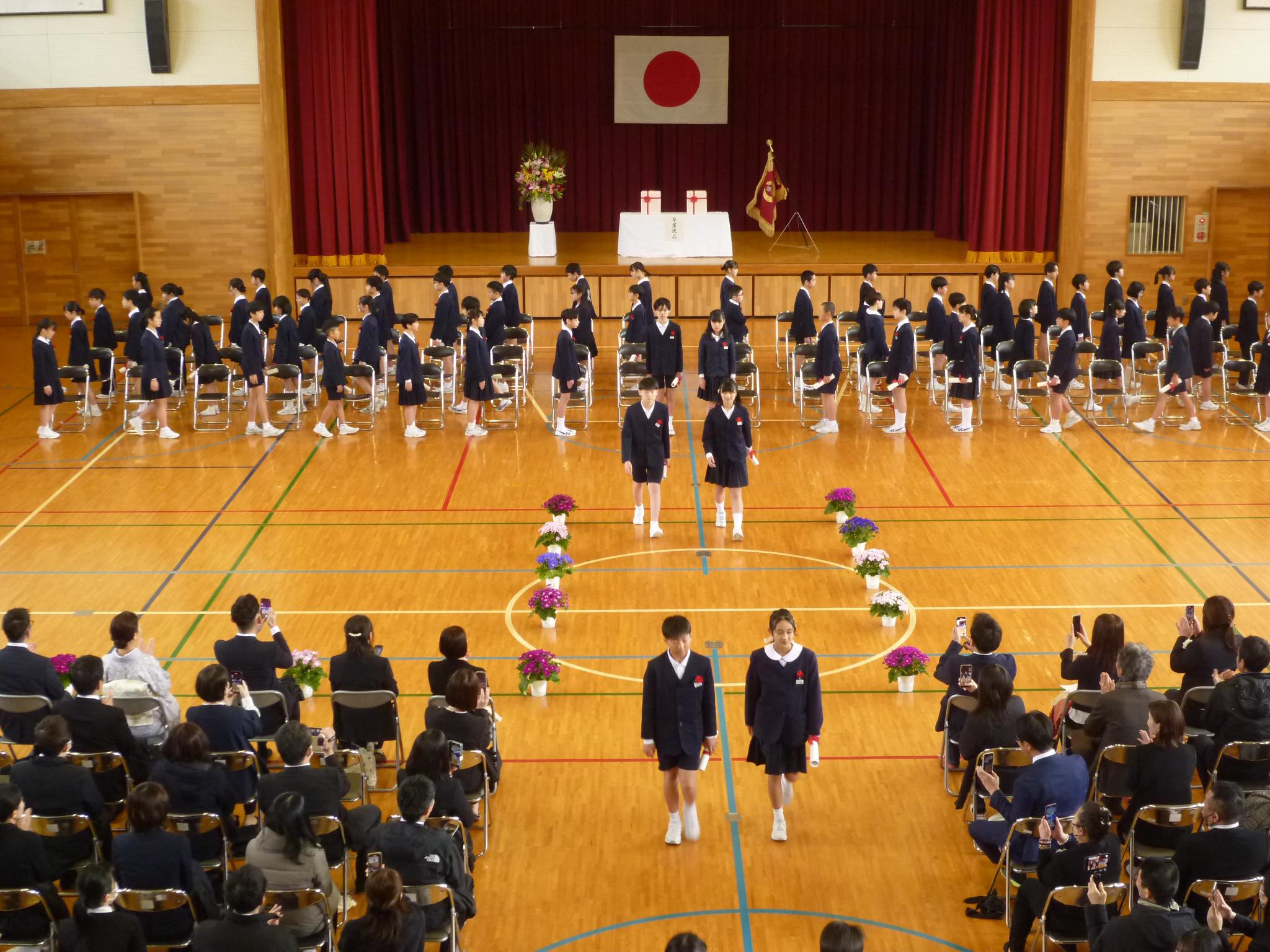 式では、卒業生が一人ずつ堂々と卒業証書を受け取り、保護者の皆様や来賓の方々、教職員に見守られながら、小学校生活の最後の日を迎えました。