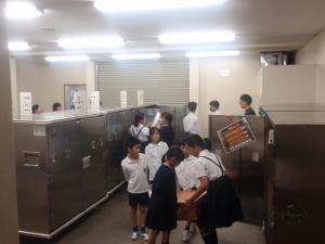 給食の後片づけで活躍するのが、コンテナ当番です。