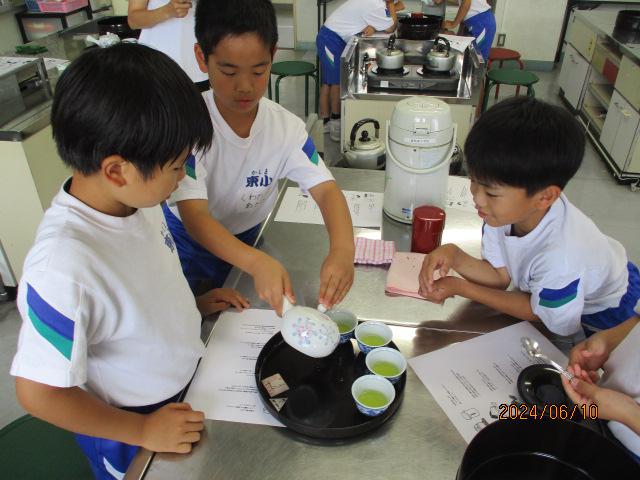 お茶の葉の量やお湯の温度,淹れる順番などていねいに教えていただきました。