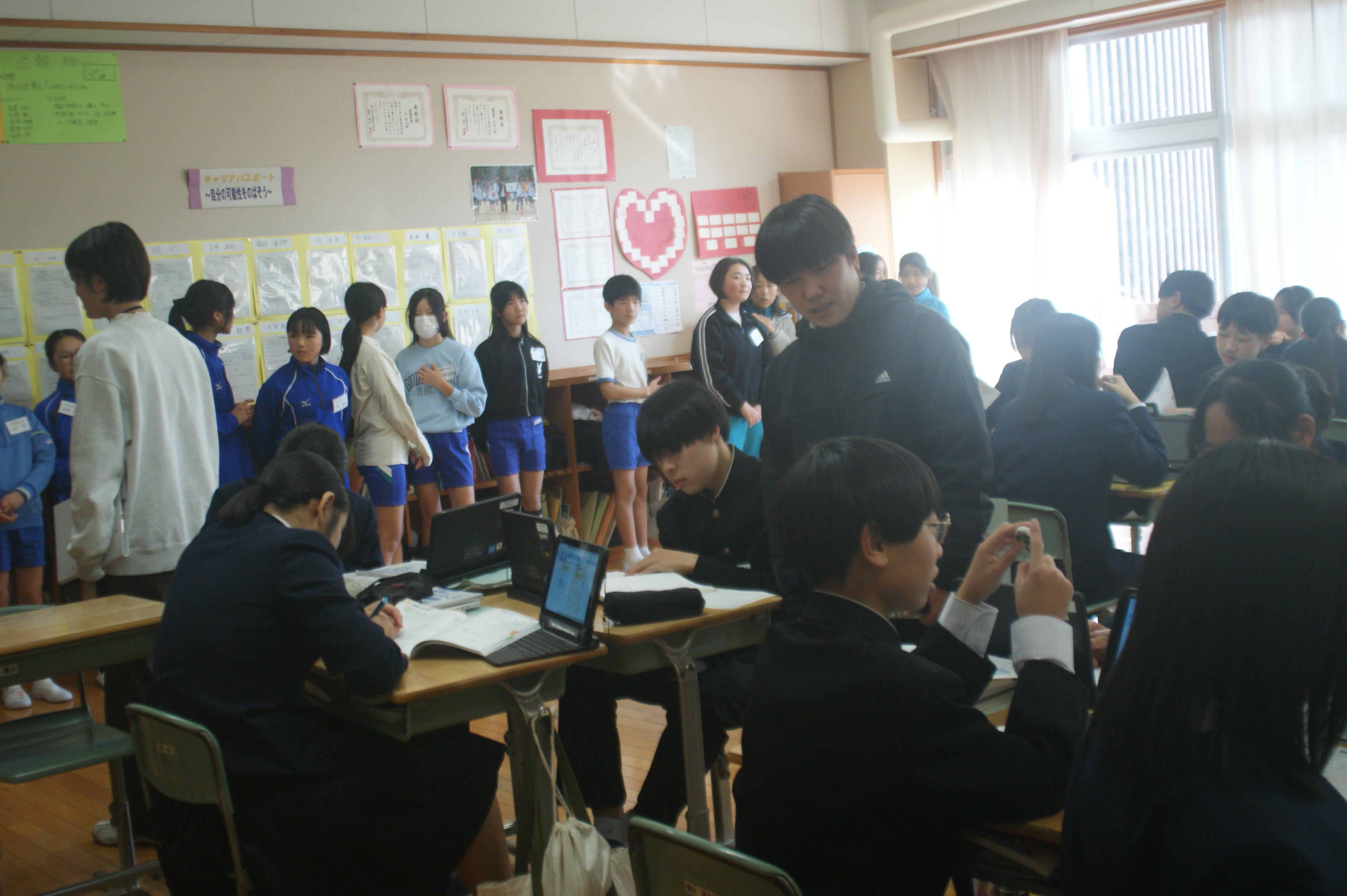 今日の午後は、鹿島中校区の3小学校から、来年度入学予定の6年生が来校し、授業の様子や部活動体験をおこないました。初めは緊張した面持ちでしたが、昨年まで一緒に過ごしていた1年生と再会すると緊張も徐々に解け、その後の部活動体験は、笑顔いっぱいに活動していました。