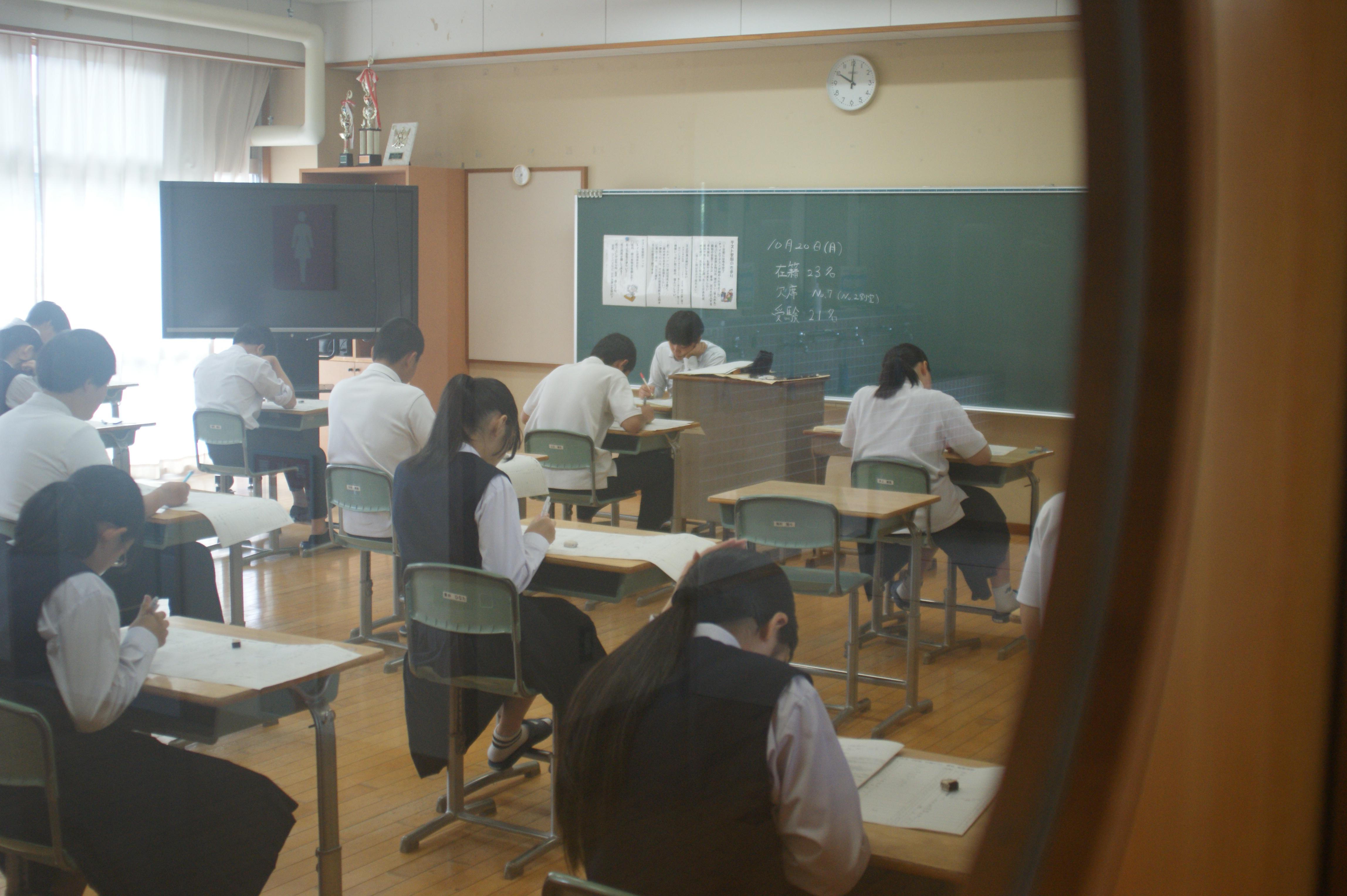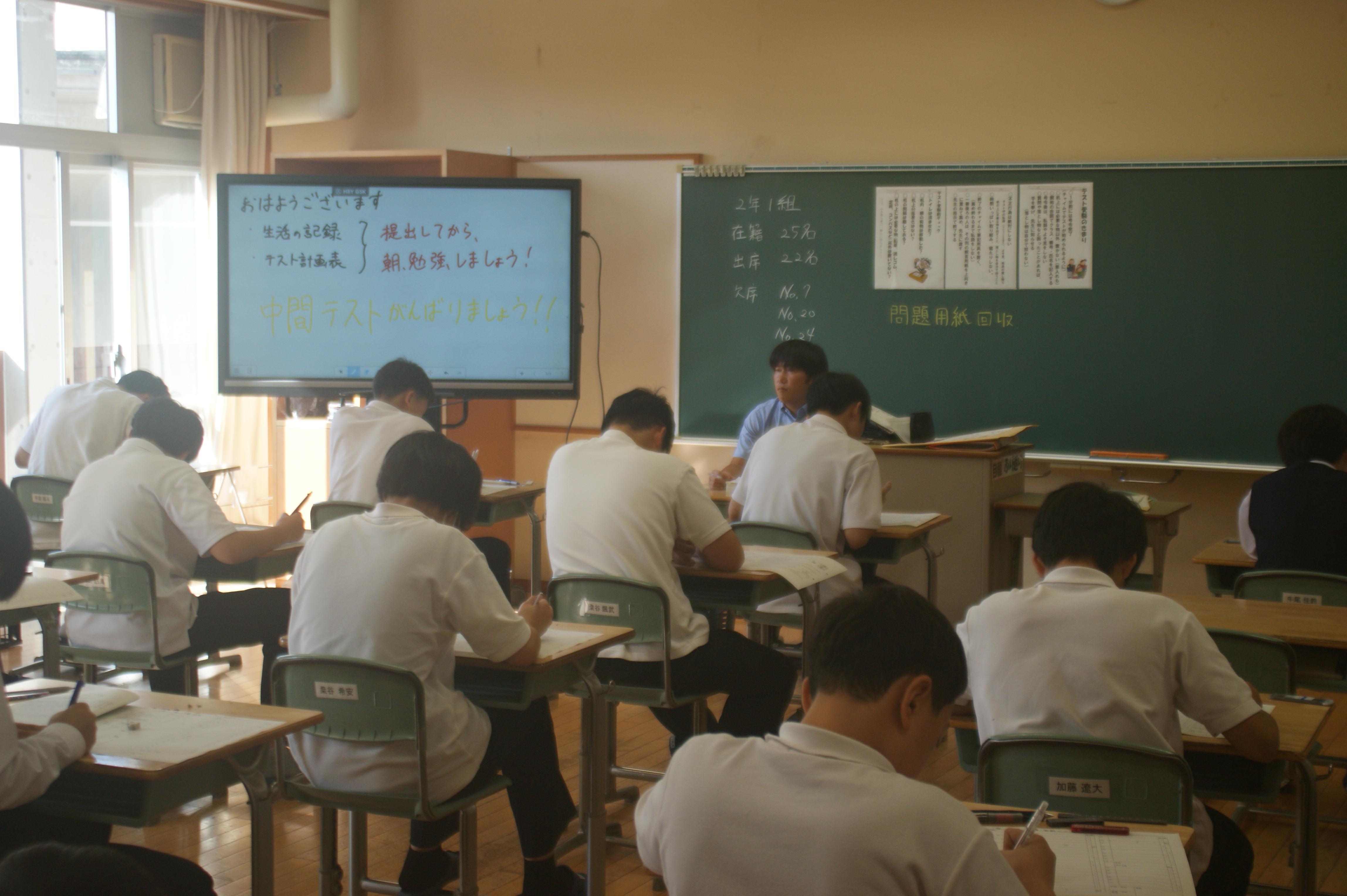 1.2年生は金曜日から、3年生は今日から中間テストでした。それぞれの教室では真剣に問題に向かう生徒の姿がありました。