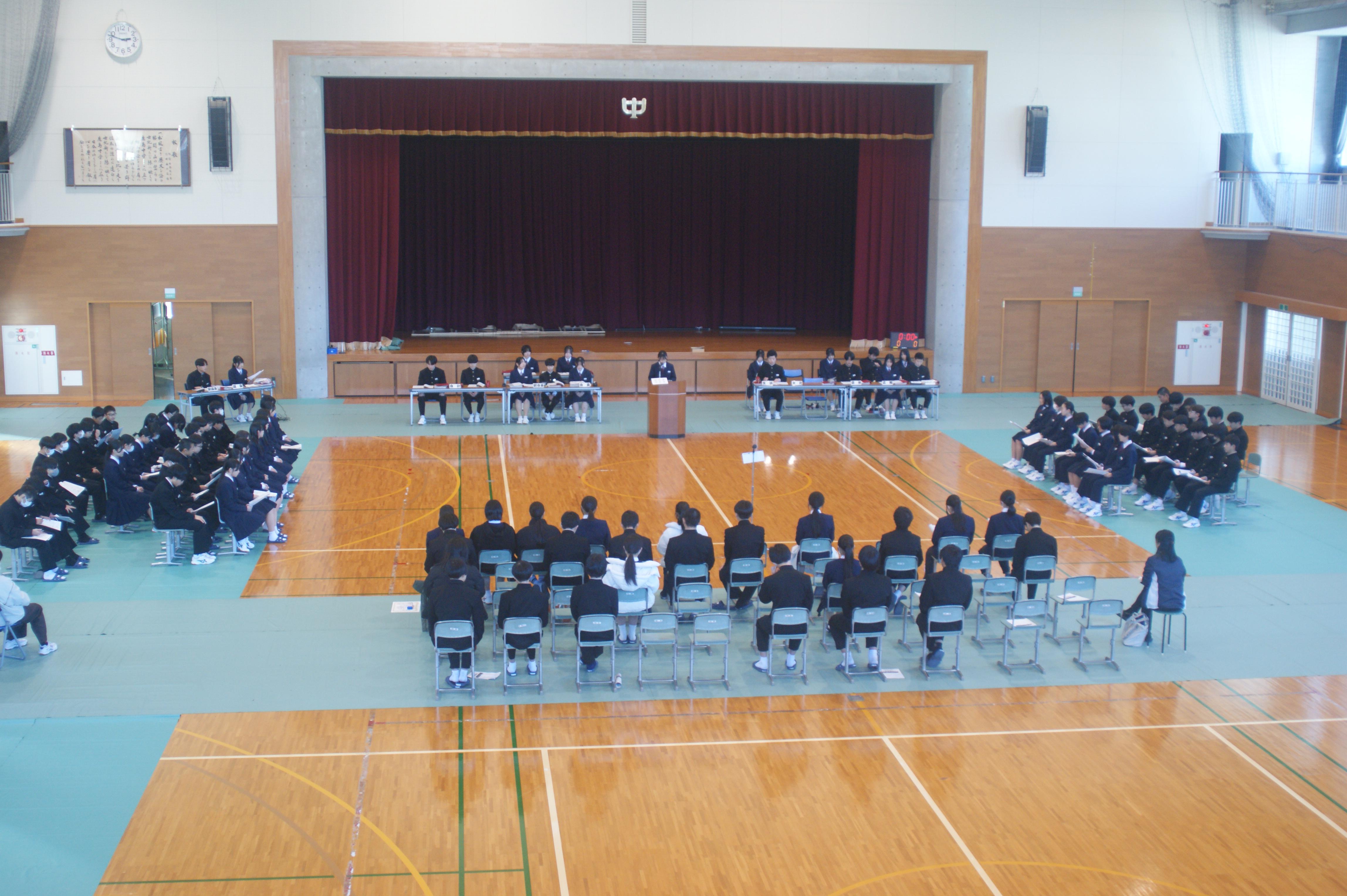 きょうの6時間目は、生徒総会と新生徒会の任命式・委嘱式をおこないました。