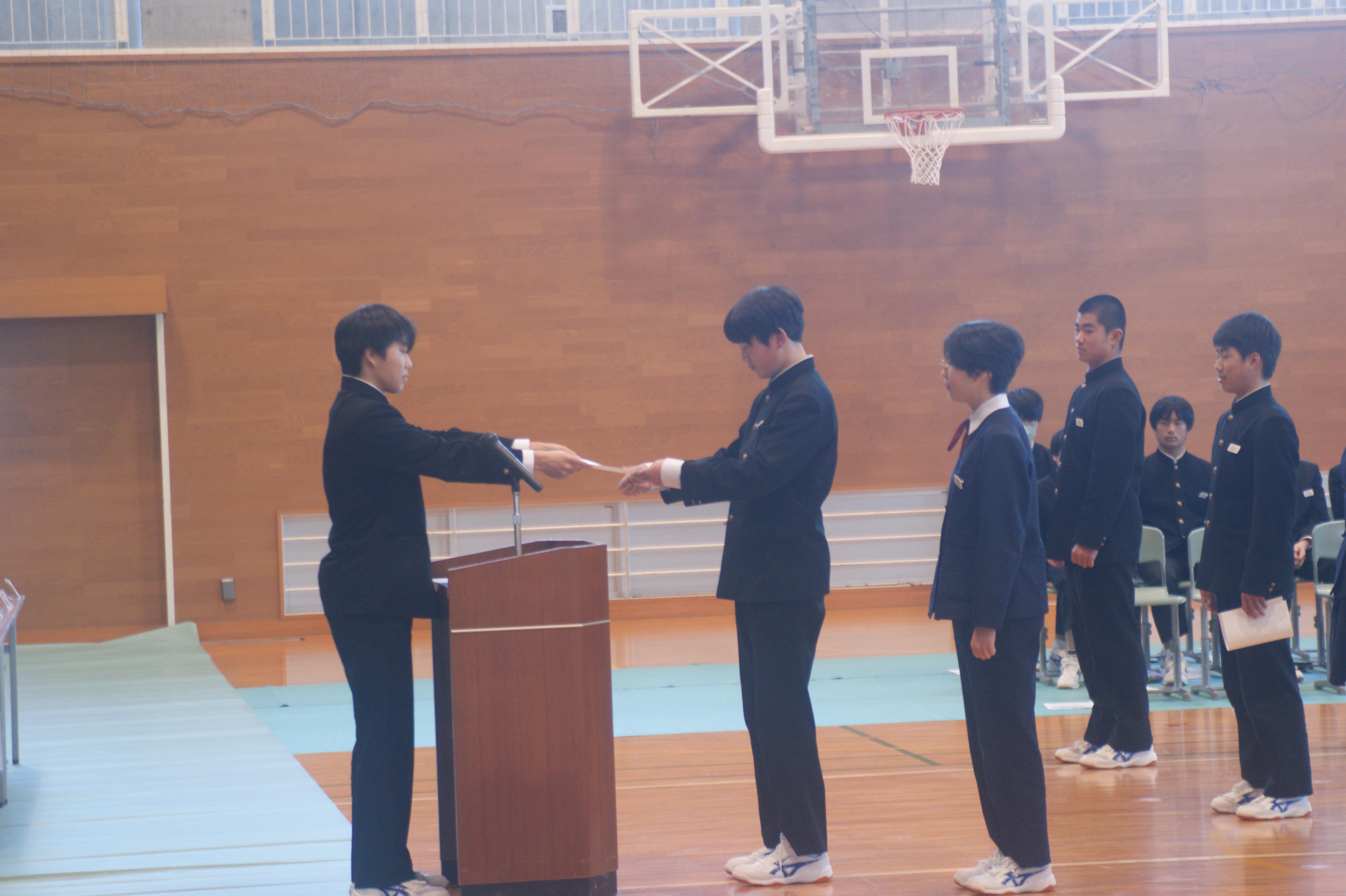 生徒総会終了後には、新生徒会本部の5人に任命書を渡し、新生徒会長から執行部のメンバーに委嘱状が渡されました。先輩たちの活動を土台に、自分たちのカラーをしっかりと出して頑張ってほしいと思っています。