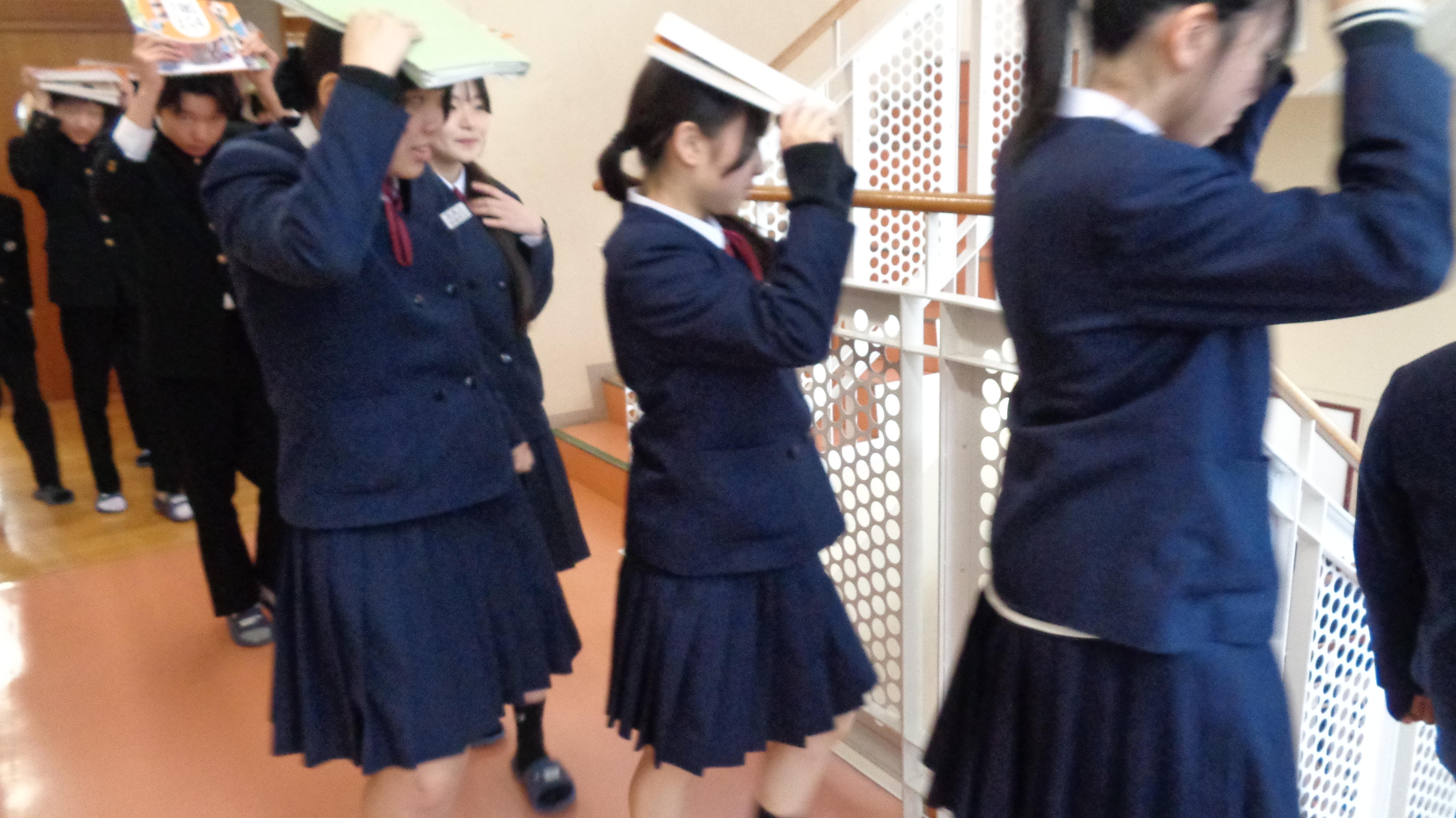 人間は、想定していない状況に身を置かれると、どうしてよいかわからなくなる。その時に自分を助けてくれるのが、自分が体験したことで、その状況が自然災害の場合、今回のような避難訓練で、このことが自分を助けてくれると生徒たちに話しました。