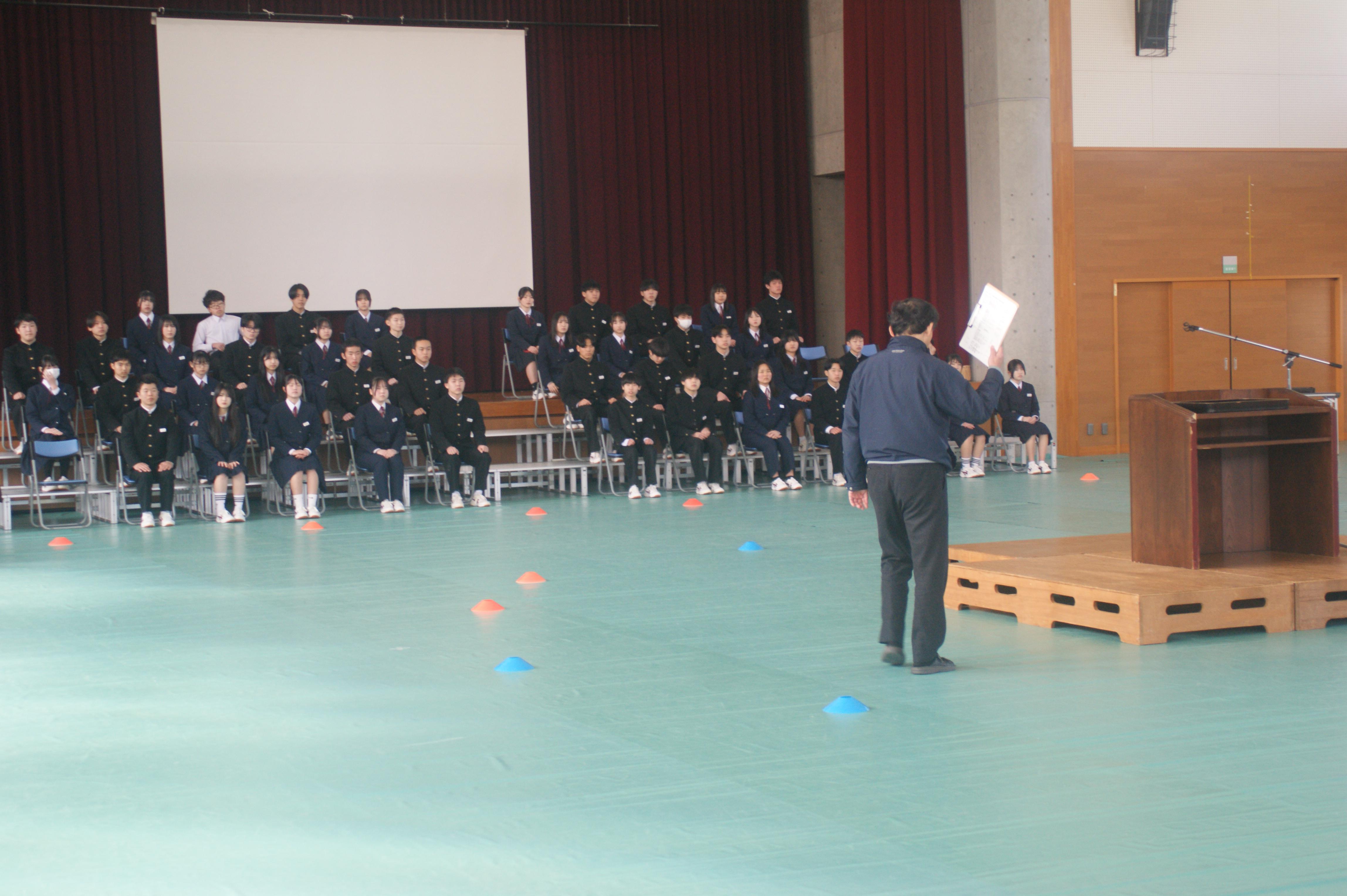 今日は、3年生は県立学校の面接を終えた生徒が午後から合流し、卒業式の練習をしていました。実際に会場に3年生が座り、呼名の練習の姿をみると、なかなか実感がわかなかった3年生の卒業が実感されました。