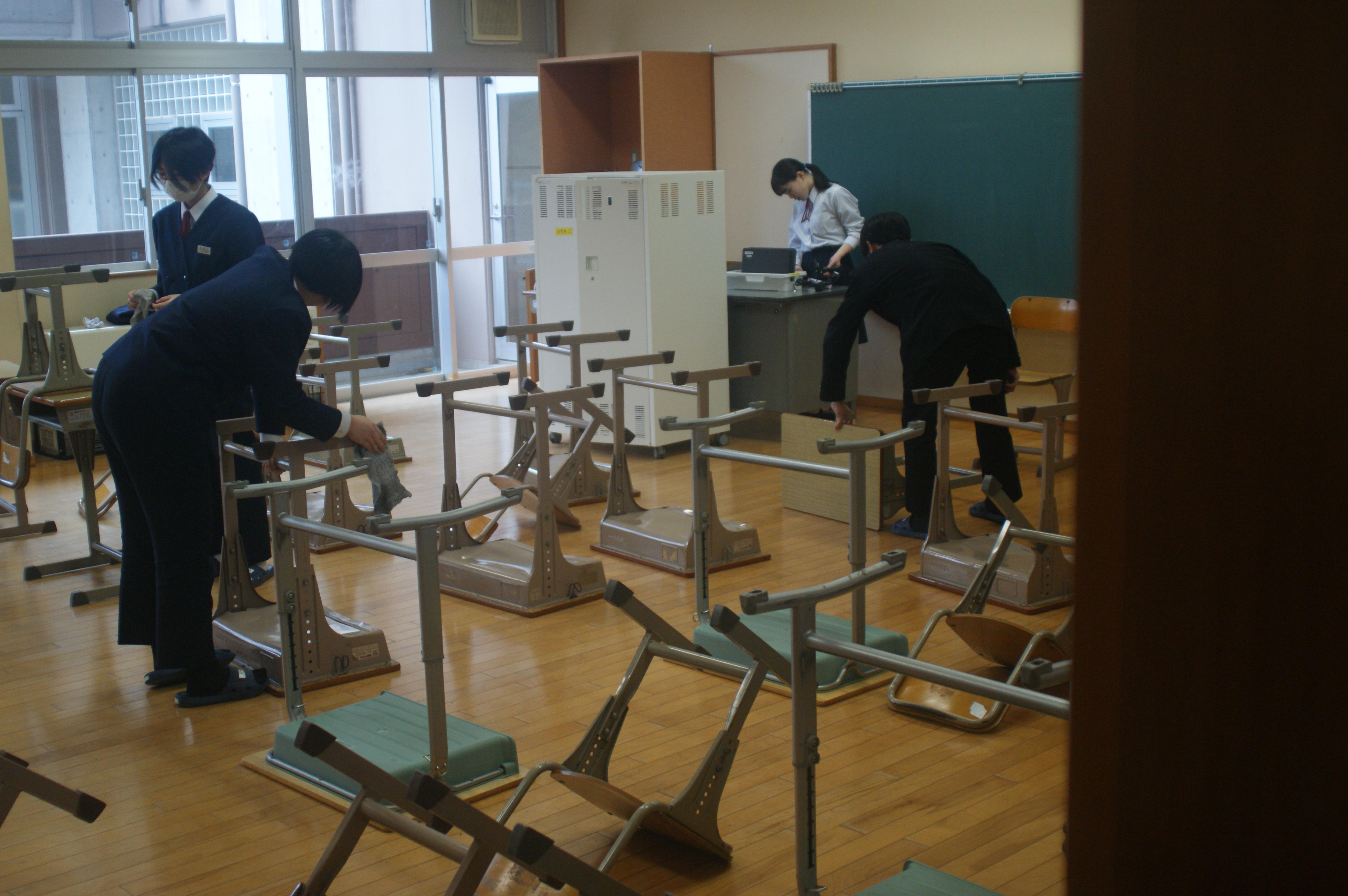 2年生教室では、進級に向けて教室の整備が行われていました。4月からはいよいよ3年生。スタートを切った途端、ブロック大会やコンクール、体育祭や合唱コンクール、そして進路決定と一気に進むような気がしています。