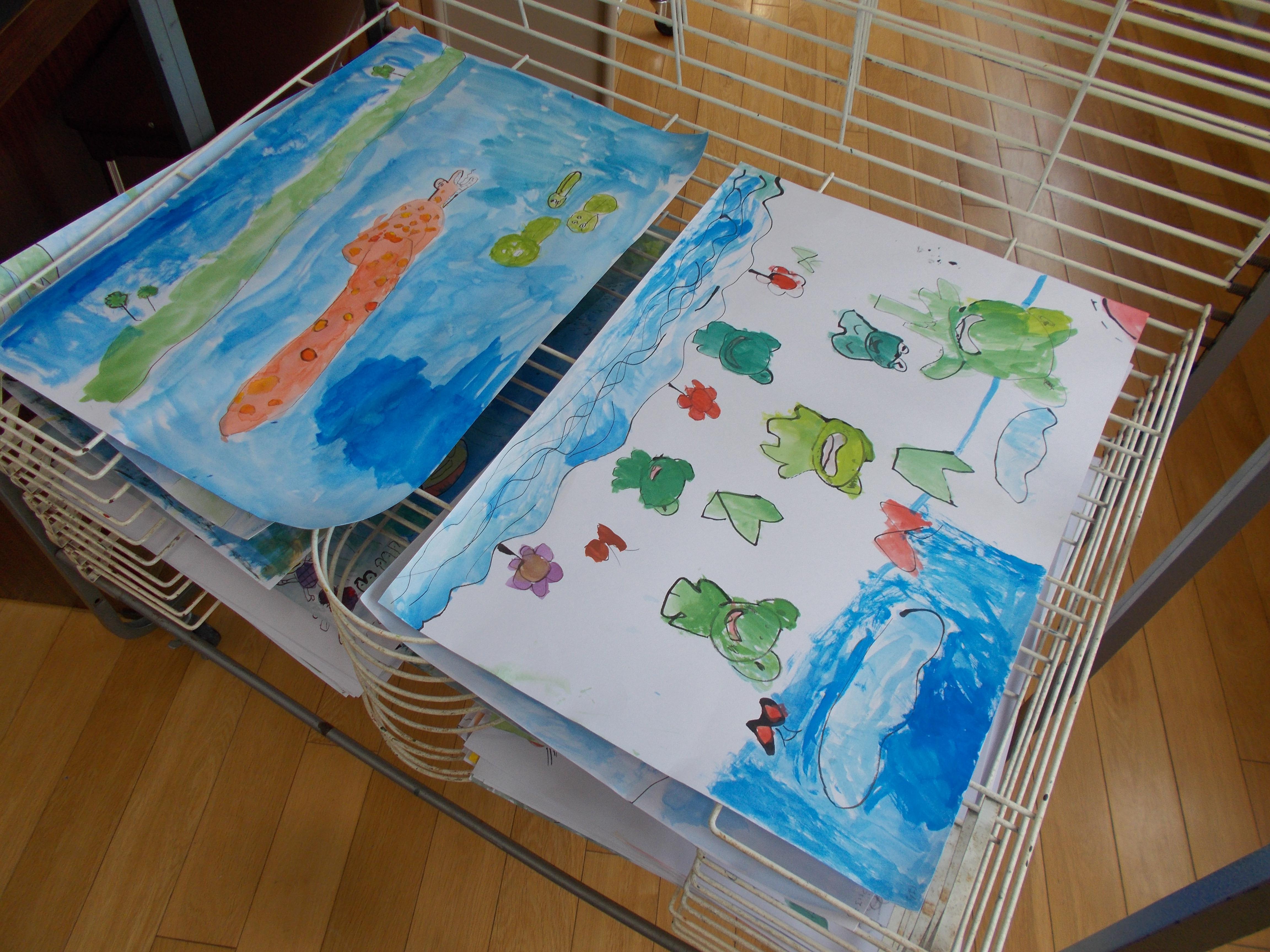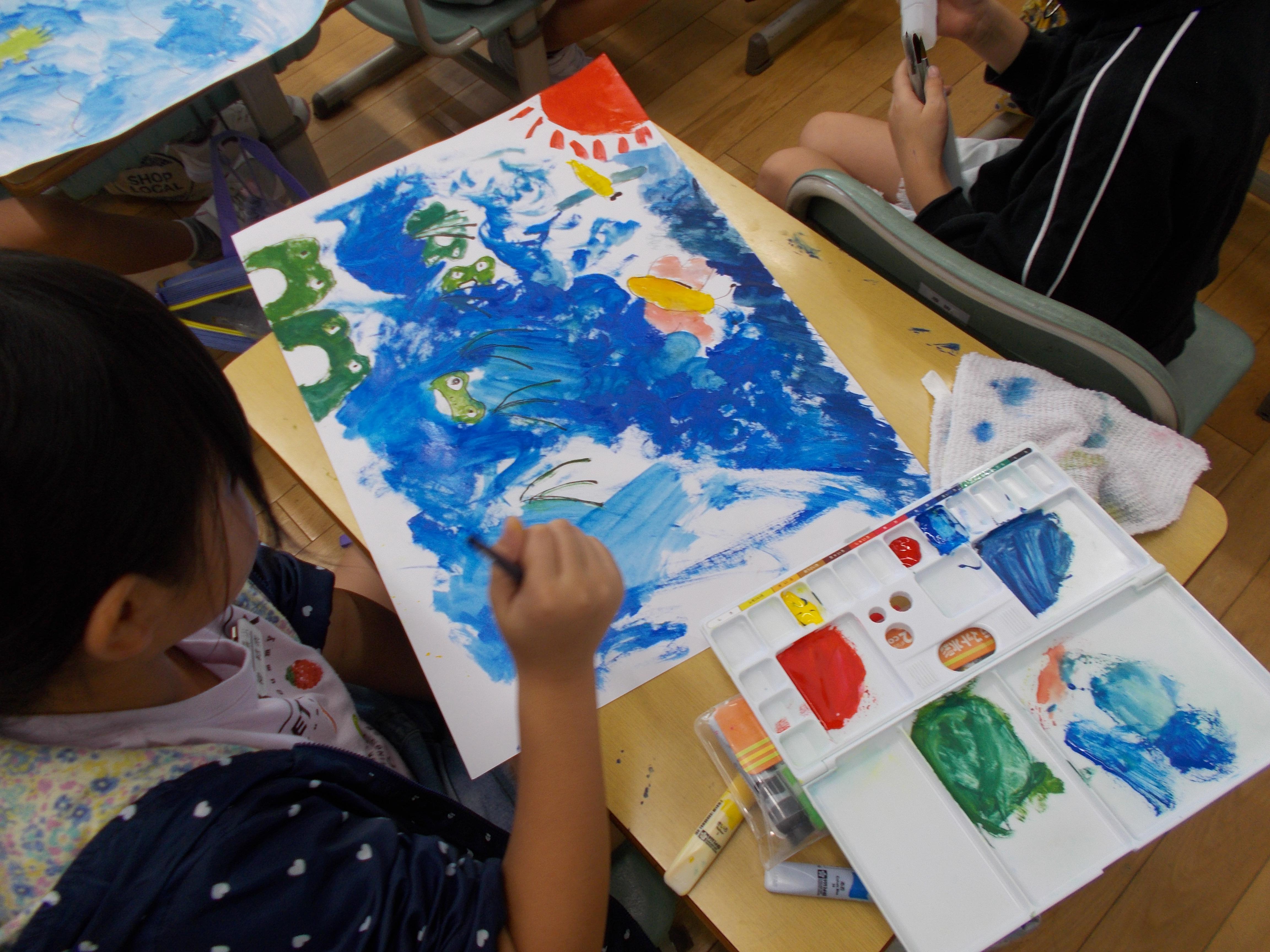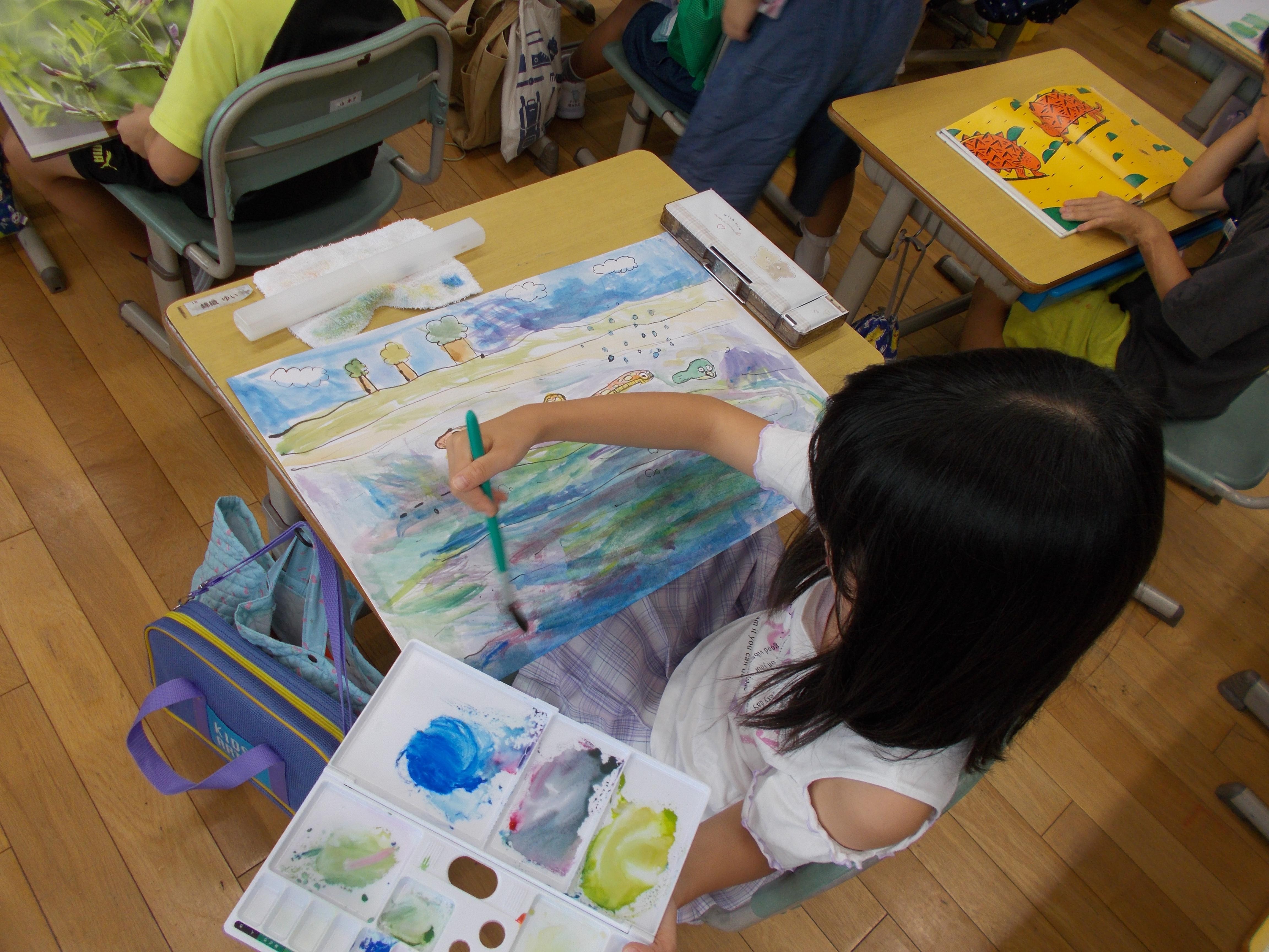 10月2日(木)色の組み合わせを考えながら 2025年10月02日 2年生は図工の学習に、前回までの図工の時間に下書きしたものに絵を塗りました。2年生は、さまざまな色を表現するための基本的な色とされる「赤色・青色・黄色」の3色を「色の三原色」と呼ばれていることを学びました。パレットで4色を使って自分がかきたい色を作り、上手に画用紙いっぱいに表現していました。2年生のこども達が「僕の、私の、見て!」とたくさん声をかけてくれましたが、どれも色づかいが上手で素敵な作品ばかりで関心しました。