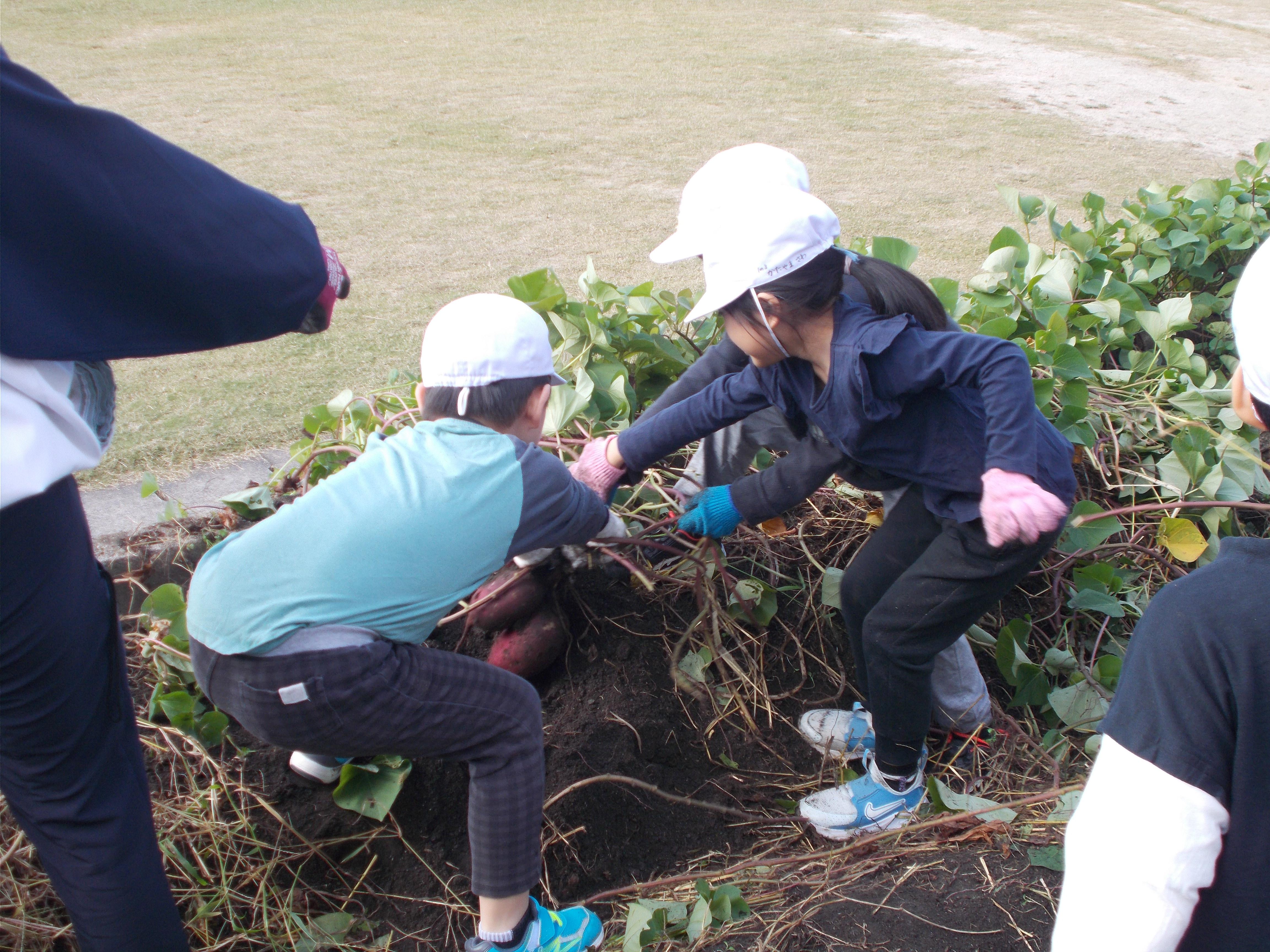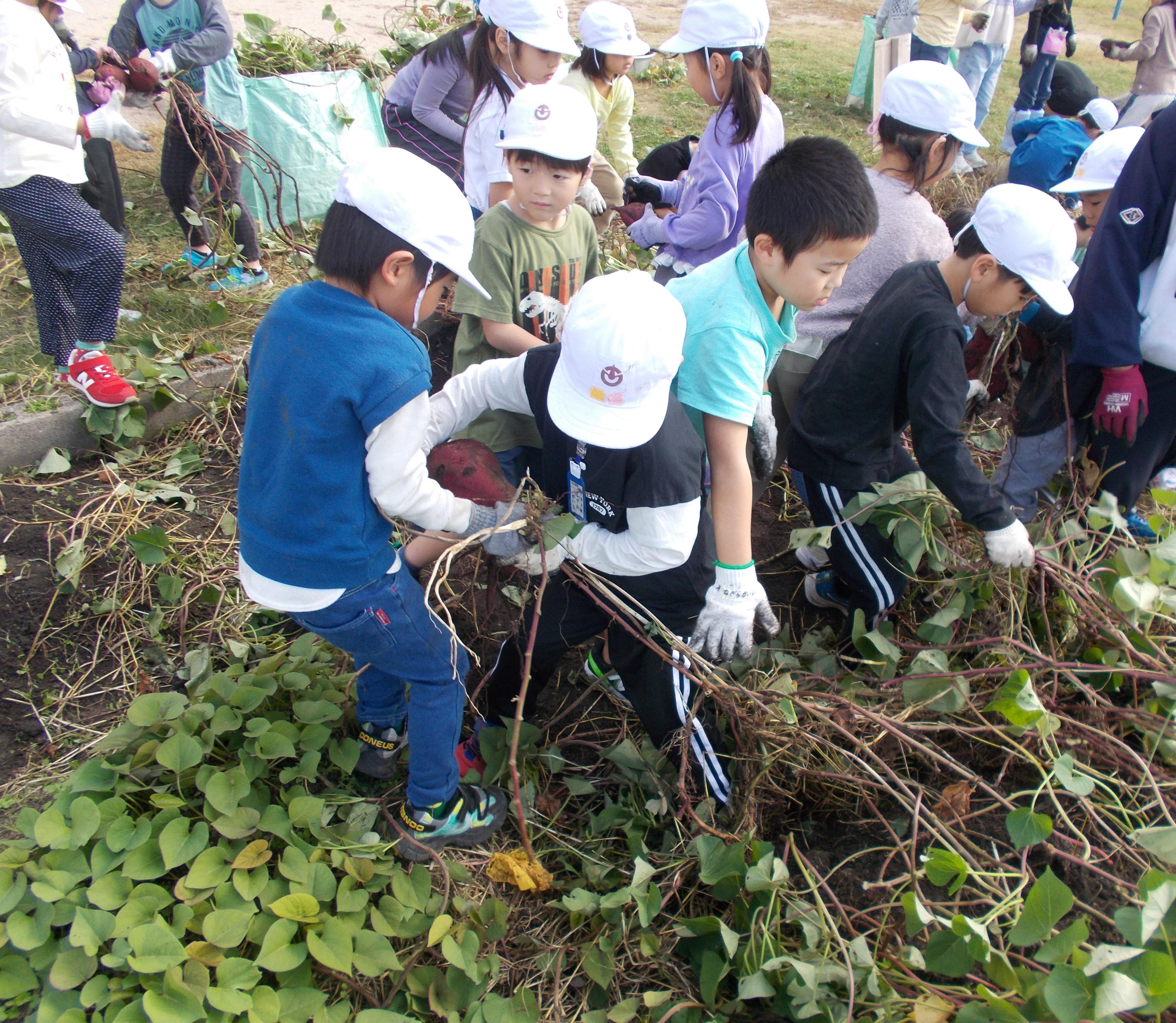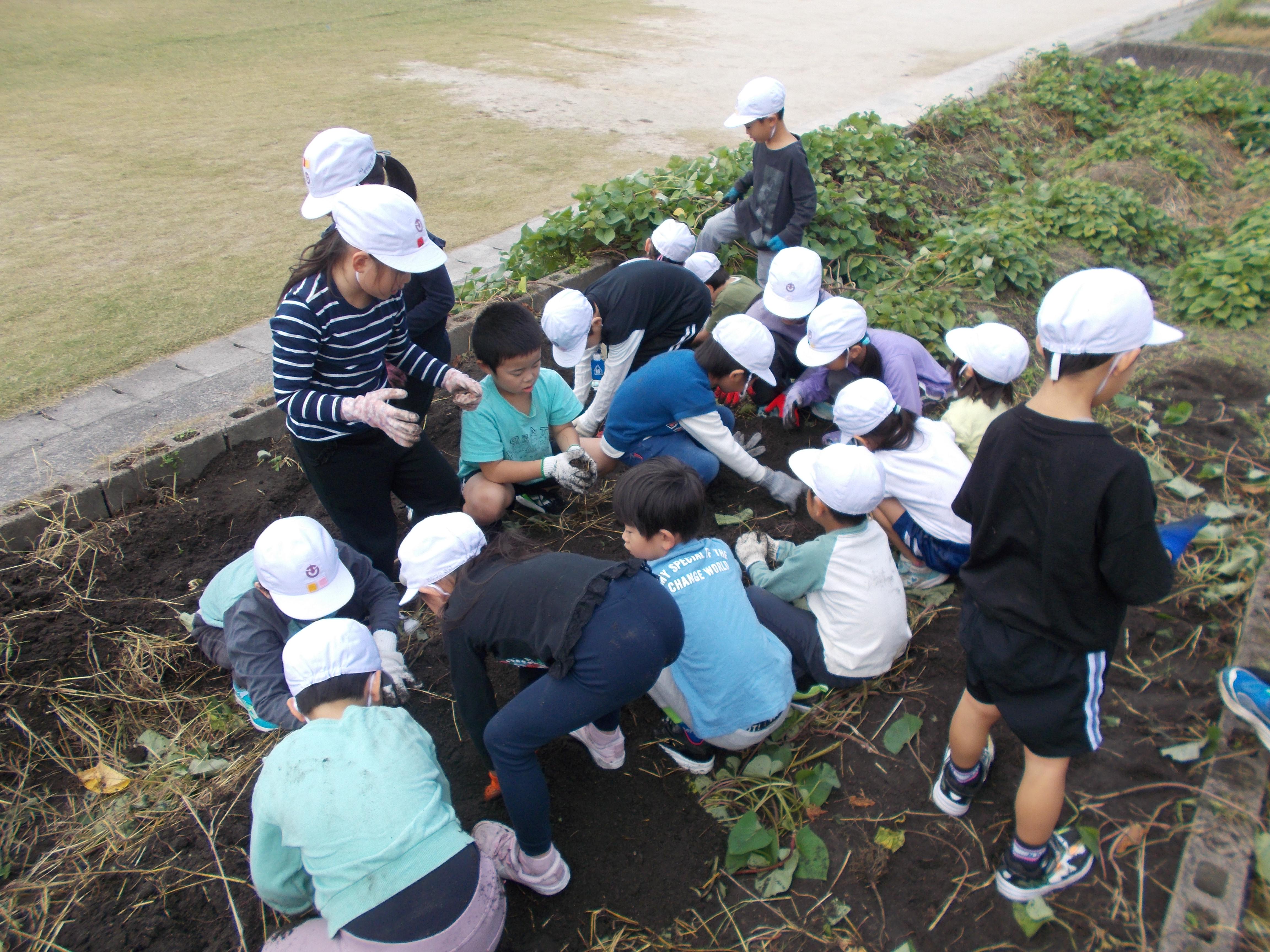 10月24日(金)食欲の秋!実りの秋!芋掘りの秋! 2025年10月24日 本日は1学期に植えたサツマイモを収穫しました。天候にも恵まれ温かい日差しに包まれた中での芋掘りでした。 サツマイモのつるを力強く引っ張ると大きなお芋が出てきました。「見て~僕の顔より大きい!」「芋掘り楽しい~!」「うんとこしょ...どっこいしょ。」と大きなかぶのお話で聞いたことのあるセリフも聞こえてきて、大興奮の中でたくさん収穫することができ、表情はとても活き活きして輝いていました。 みんなで泥んこになって頑張って収穫した旬の食べ物を味わっていただき、季節を感じてくださいね。さぁ、どうやって食べるのかな?楽しみですね!