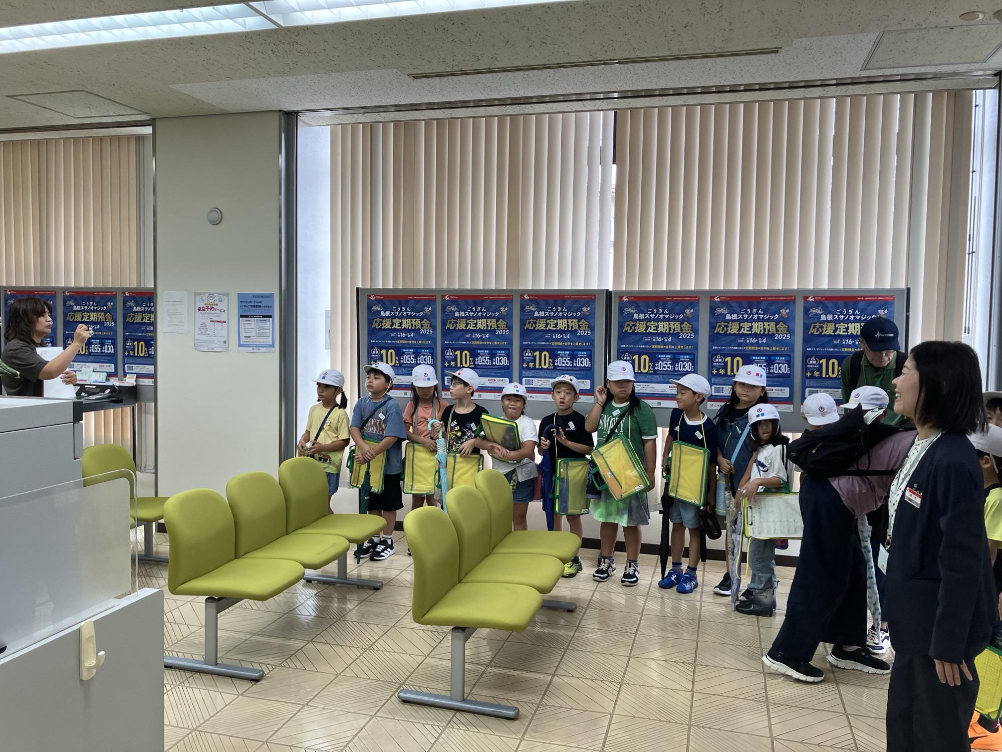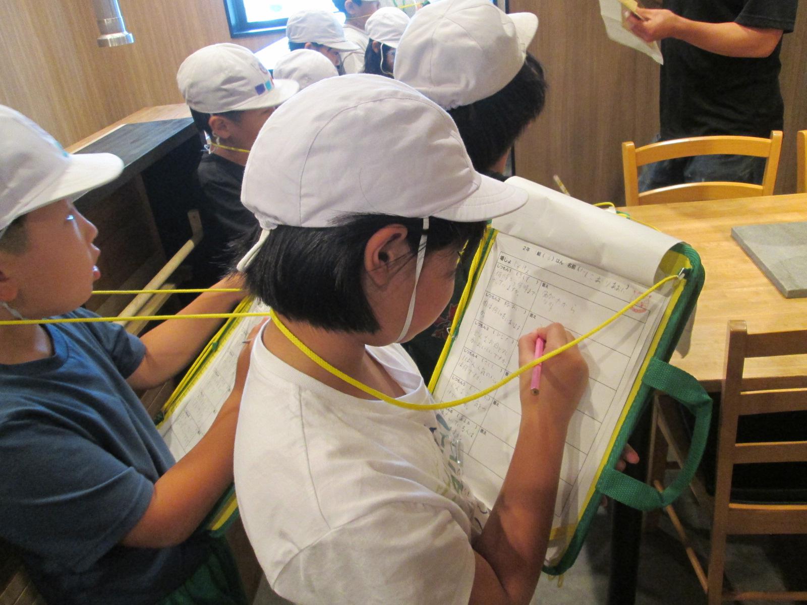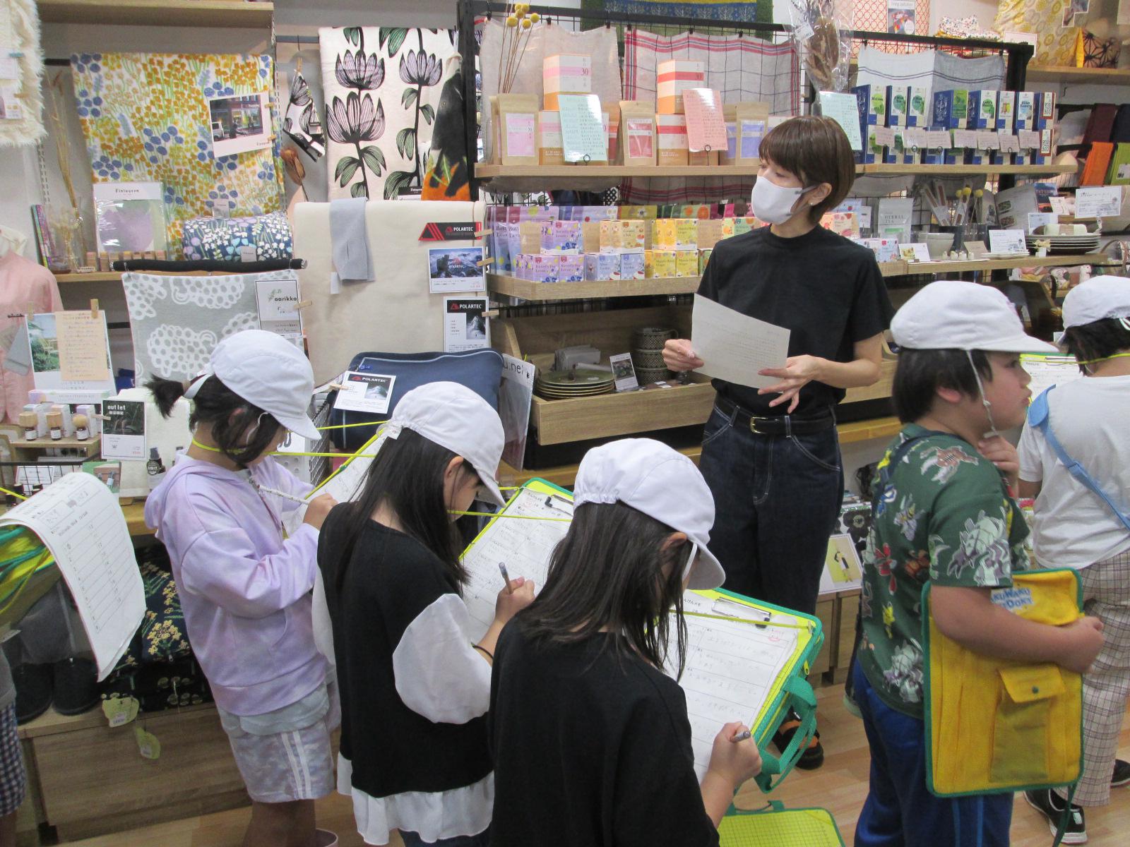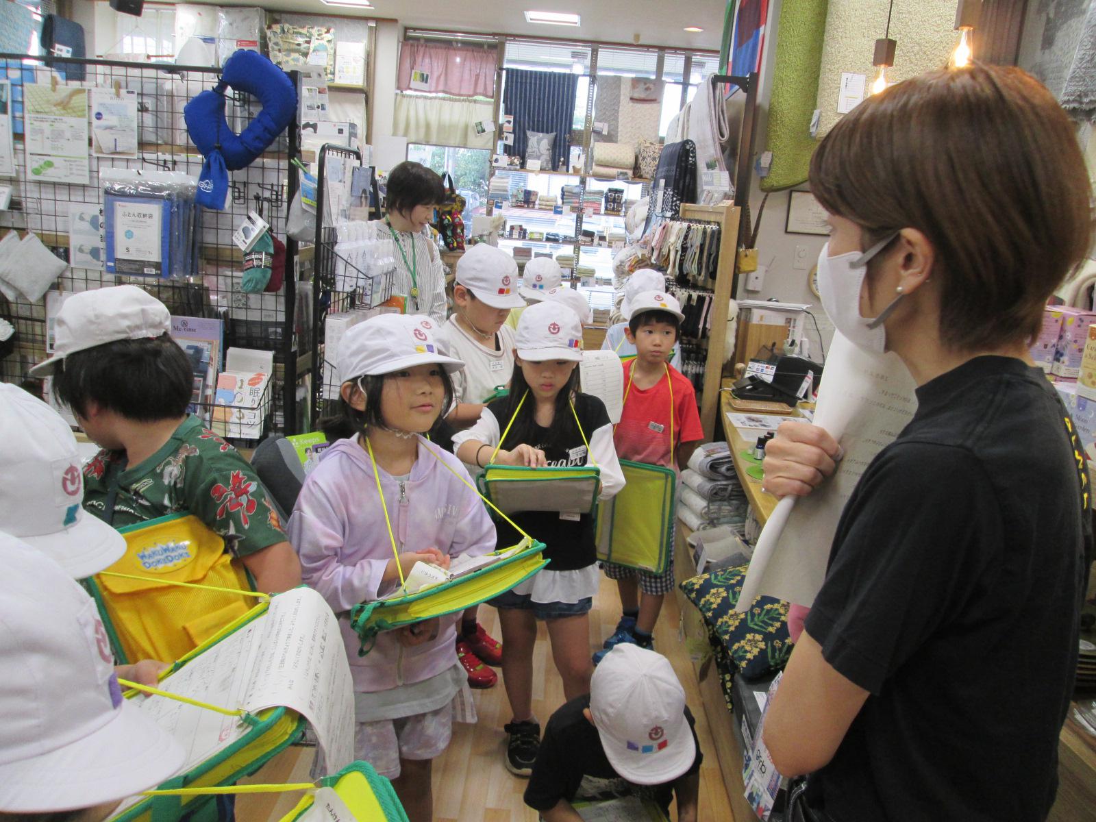 今日は各班に分かれて、13ヶ所のお店などを訪問させていただきました。仕事の内容や働くうえでの思いや工夫などをお店の方から話を伺い、施設の中も見学させていただきました。私が一緒に訪問させていただいたところでは、お店の方と一緒に「いらっしゃいませ!」「ありがとうございました!」と挨拶をし、お店に来た人が気持ちよく過ごすことができるように爽やかで元気な挨拶をさせていただきました。2年生それぞれに行った場所は異なりますが、聞いたことや気づいたことを探検メモにたくさん書くことができたので、友達やお家の人に伝えることができるといいですね。