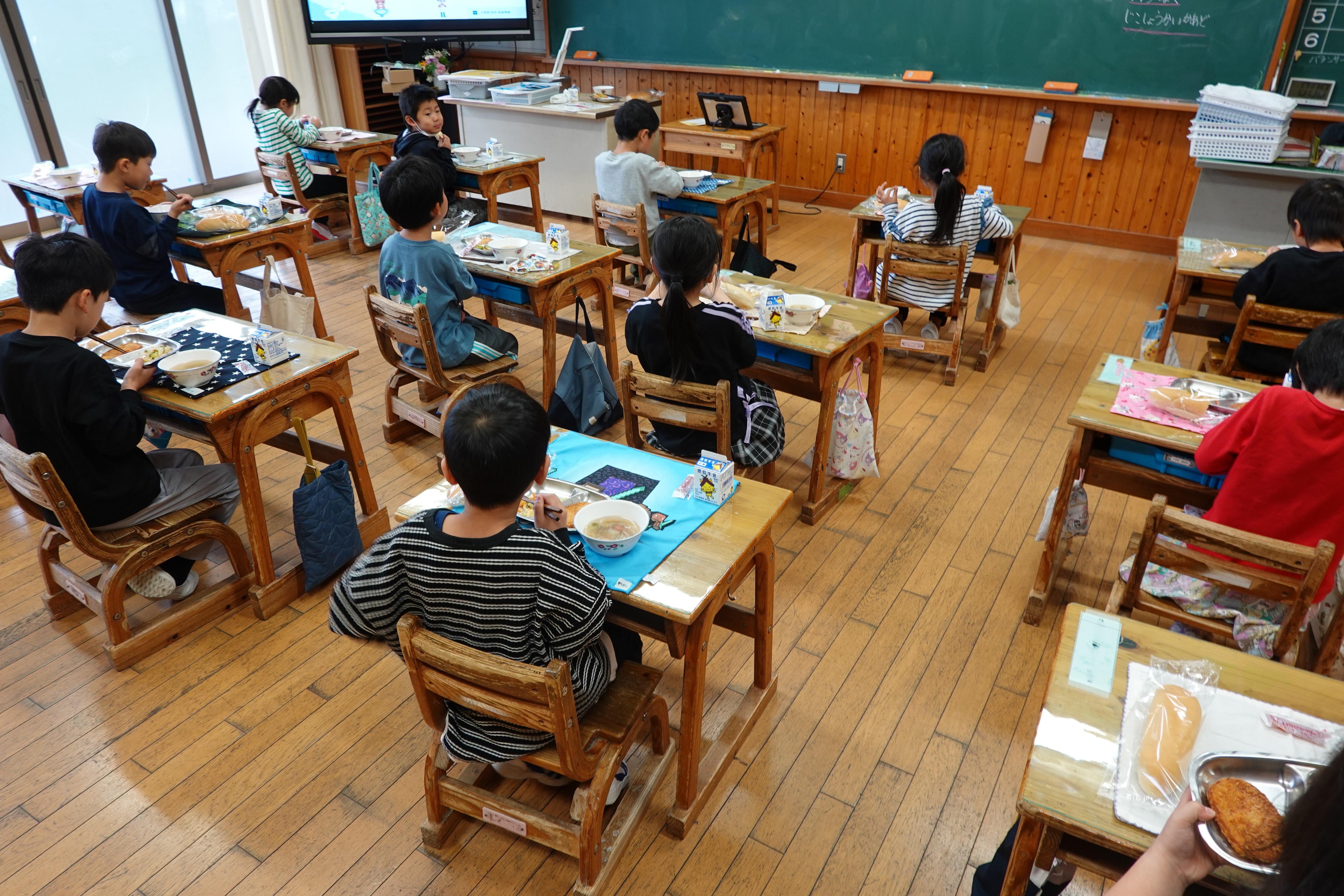 今日から1年生も給食をスタートしました。教室でやくそくを確認した後、パントリーから教室まで食器や食缶を落ち着いて運び、配膳も自分たちで上手にしていて感心しました。1年生はおいしいおいしいと言って食べていました。給食に関わっていただいている皆様、こどもたちのために栄養満点で安全安心な給食をありがとうございます。