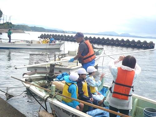 こどもたちは、地元の漁師の方々にご協力いただき、漁船に同乗させていただきました。専用の漁具「じょれん」を用いた漁の様子を見学し、実際に操作を体験させていただく中で、漁業に携わる方々の日々の工夫やご苦労について理解を深めることができました。