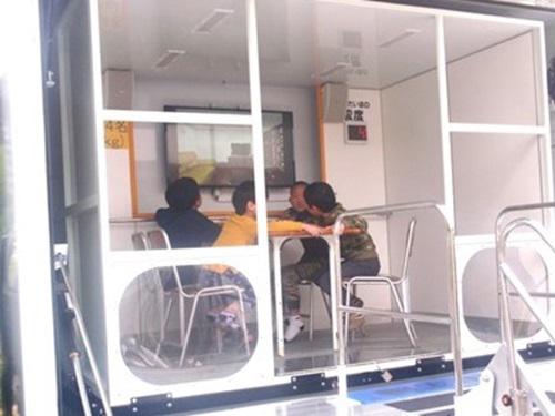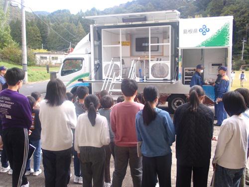 避難後には、消防署の方々のご協力のもと、起震車による揺れの体験を行いました。