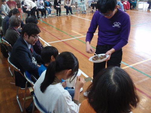 25名の児童一人ひとりから感謝のメッセージを伝えた後、こどもたちが心を込めて作った大学いもを来場された方々にふるまいました。