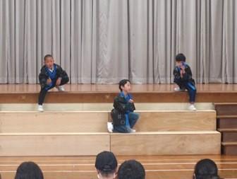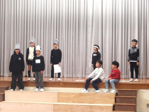今年の学習発表会は、こどもたちが合言葉にしている「やってみよう!」をテーマに、5・6年生が考えたストーリー仕立てで進行しました。