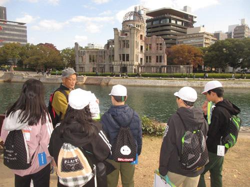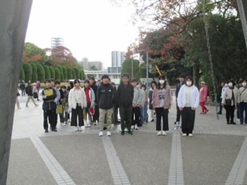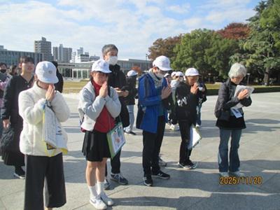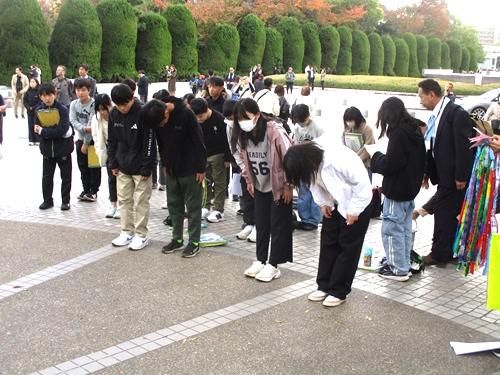 そして、平和記念資料館の見学をした後には、「原爆の子の像」の前で世界平和への祈りを込めて千羽鶴を捧げました。