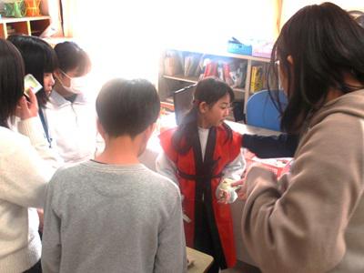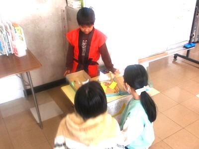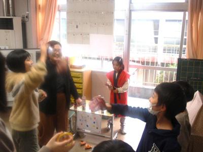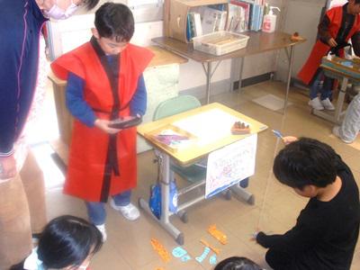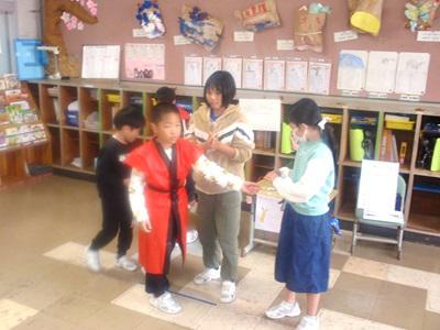 12月2日、昼休みの時間を使って、1・2年生が主催する「秋祭り」を開催しました。3年生以上の児童や教職員を招待し、1・2年教室には笑顔と歓声があふれました。