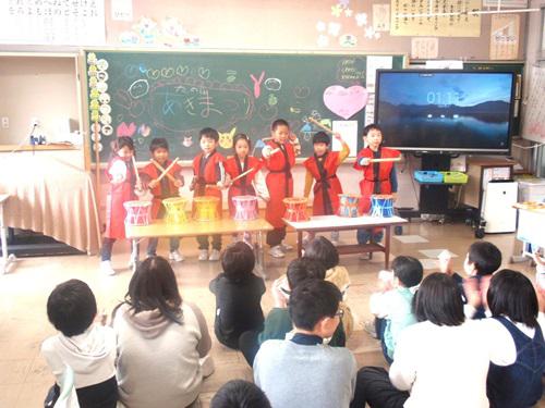 オープニングでは、1・2年生が自分たちの手で作り上げた"手作り太鼓"による演奏を披露しました。力強いリズムと元気いっぱいのパフォーマンスに、大きな拍手が送られました。