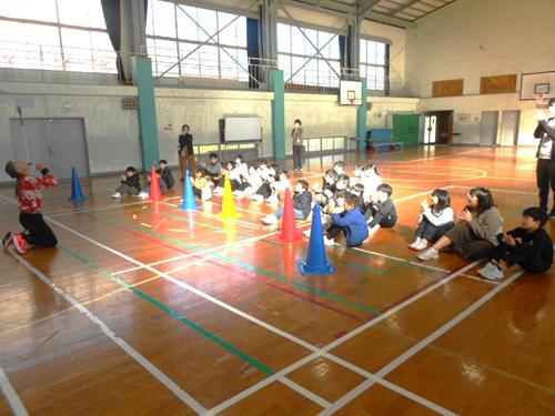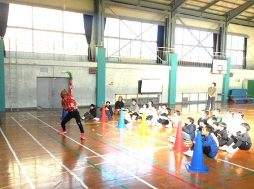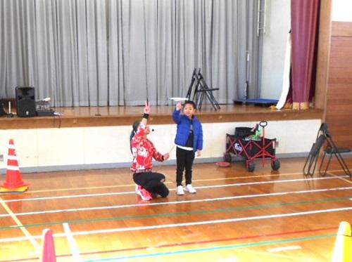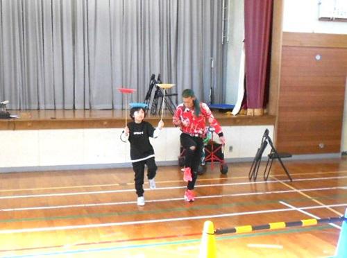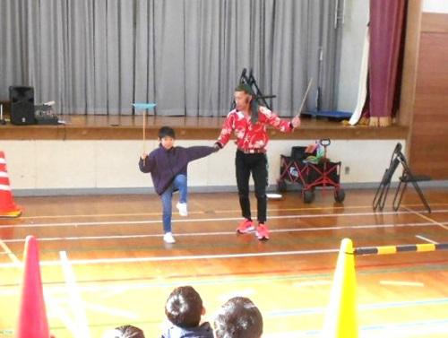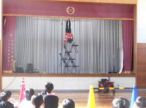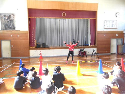 この日は昼休みを延長し、全校児童でジローさんのパフォーマンスを鑑賞しました。間近で繰り広げられる迫力の技に、こどもたちは終始釘付け。途中には、こどもたちが実際にパフォーマンスを体験する場面もあり、体育館は驚きと笑い声、そして大きな拍手に包まれました。パフォーマンスが終わると、こどもたちは「(パフォーマンスに)びっくりした」「すごいと思った」「ジローさんに会えてよかった」など、あふれる思いを次々と言葉にして発表しました。