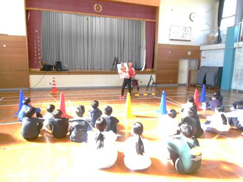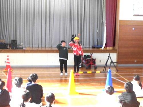 12月18日(木)、松江観光大使としてもご活躍中のストリートパフォーマー、ジロー今村さんが大野小学校に来てくださいました。
