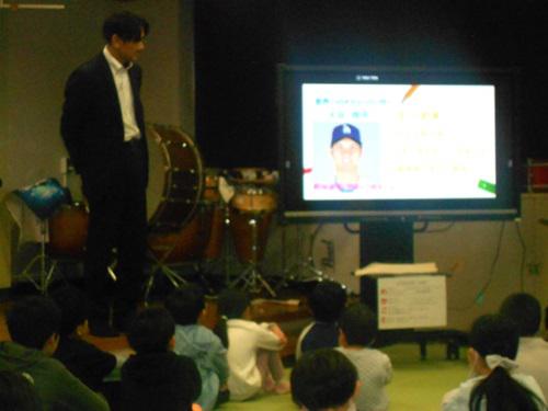 始業式では、まず地震発生時の対応について改めて指導を行いました。その後、メジャーリーガーの大谷翔平選手がこどもの頃に父親と交わした「3つの約束」を紹介し、本校の「みんなのめあて」と関連付けて話をしました。