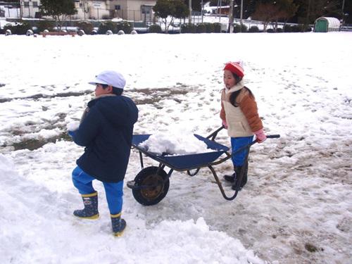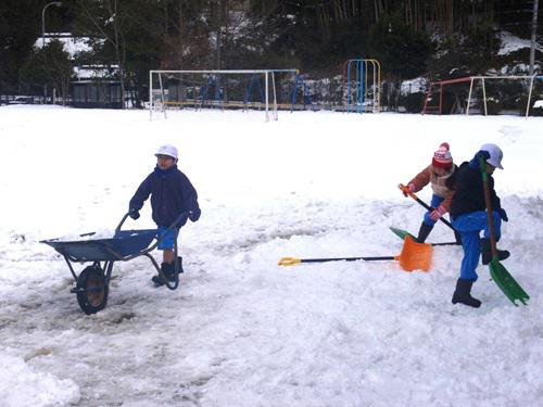 大きなスコップやねこ車を器用に使いこなし、力強く雪を運ぶ姿はとてもたくましかったです。