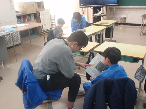 2月5日の朝の時間、異学年ペアによる「読み聞かせ」を行いました。