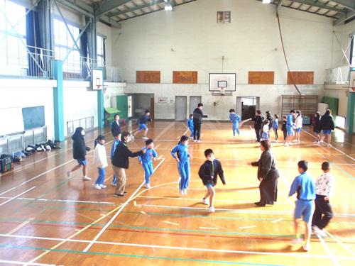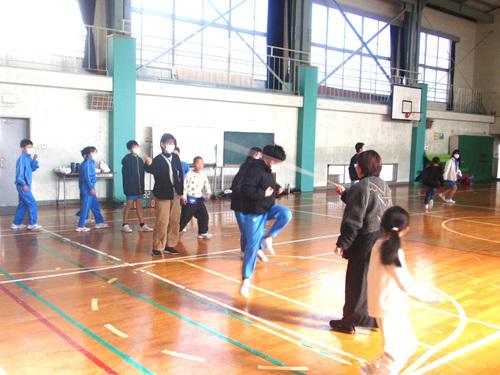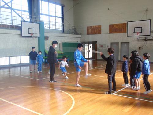各チームで取り組んだのは「長縄8の字とび」です。声をかけ合いながら、リズムよく縄をとび越える元気な姿が見られました。