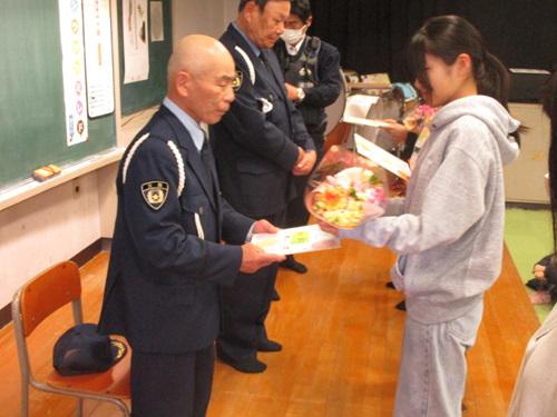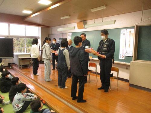 3月3日、毎朝児童の登校を見守ってくださっている3名の交通指導員さんと駐在所の巡査部長さんをお招きし、「交通指導員さんに感謝する会」を開きました。